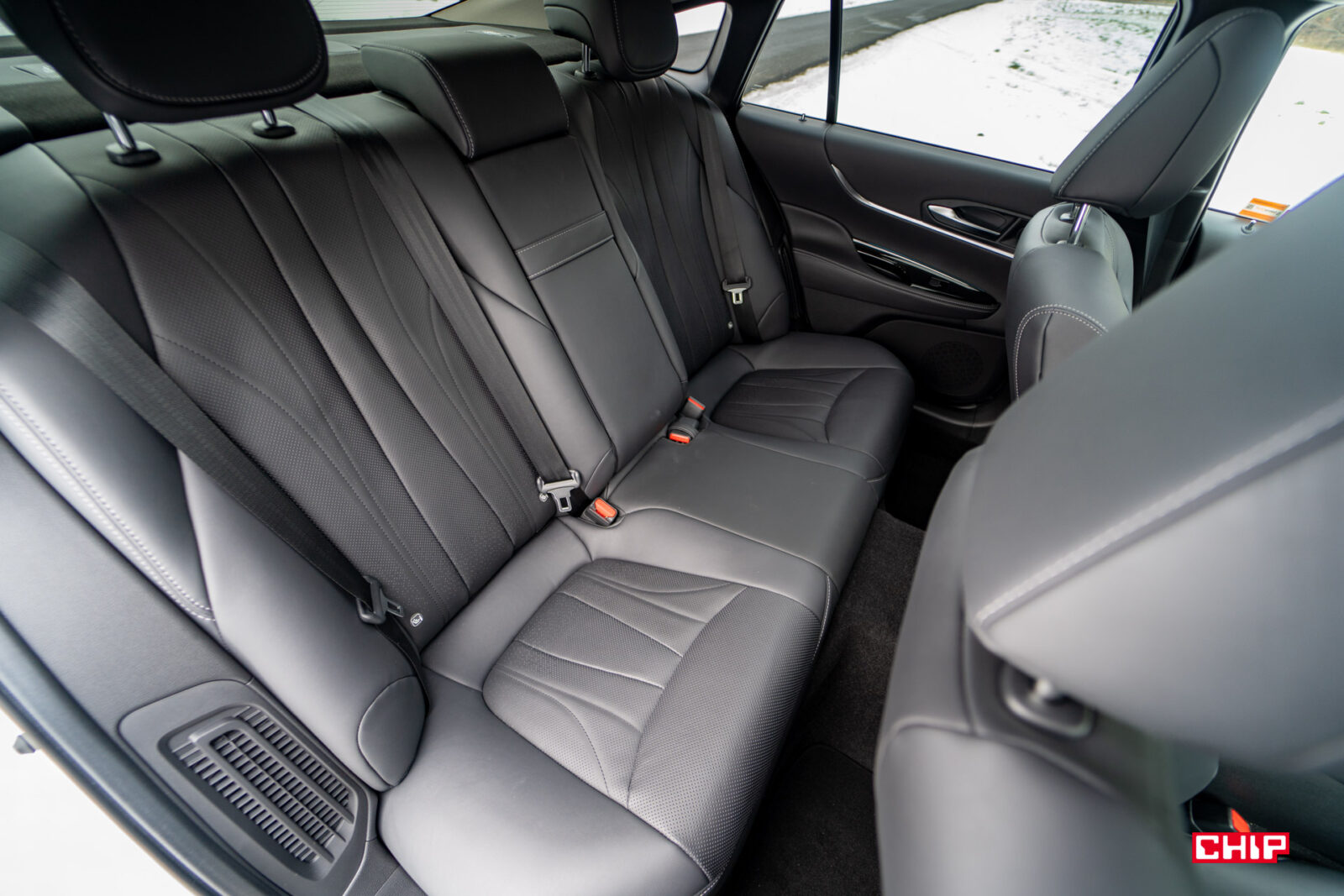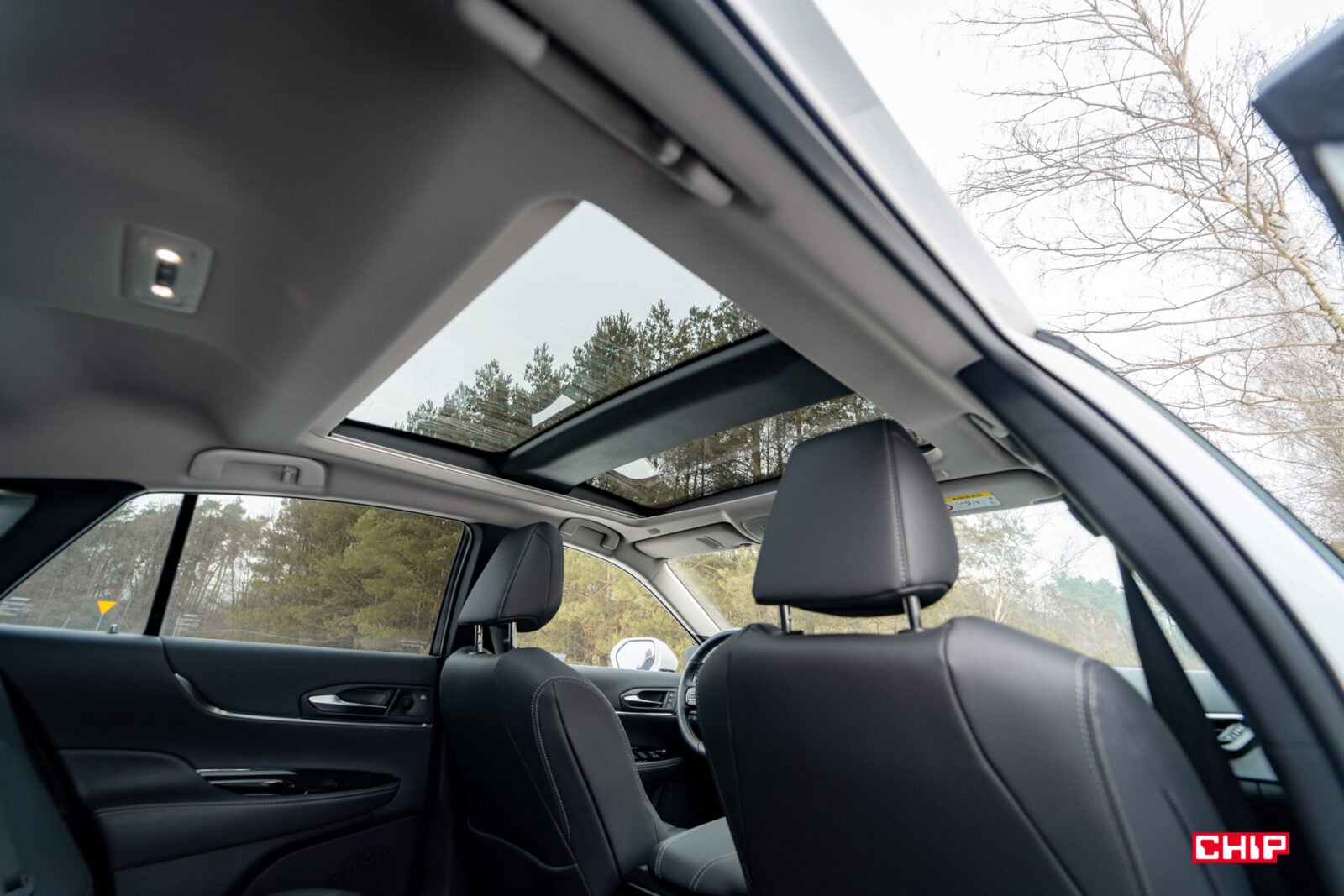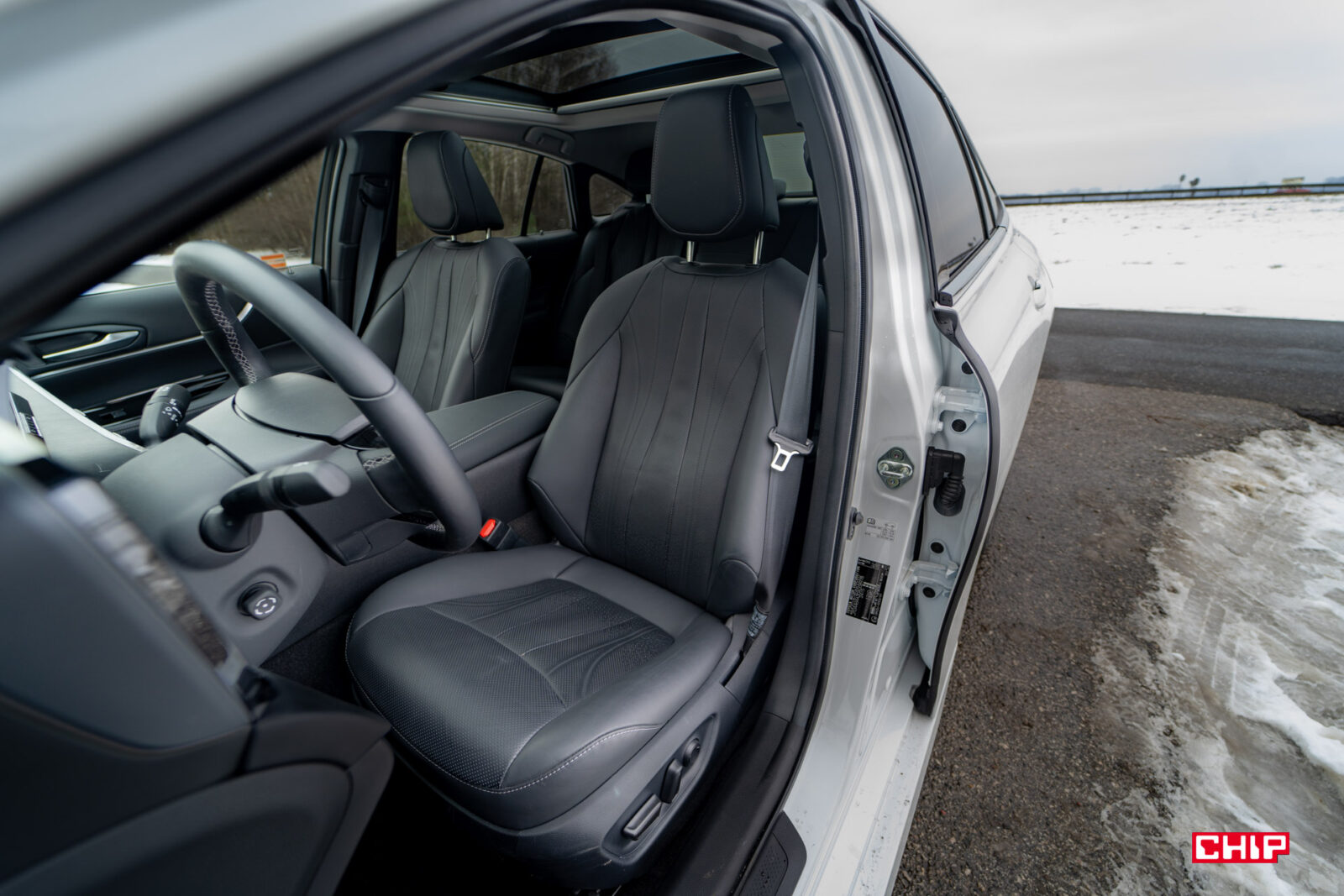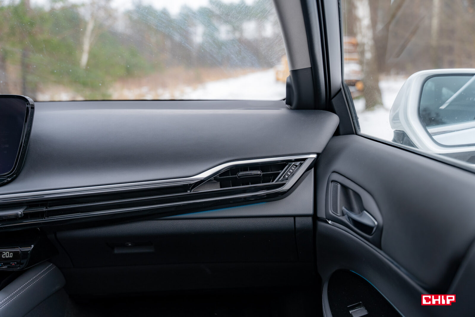 Projekt wnętrza to coś pomiędzy nowymi modelami Toyoty, jak Prius czy Camry, a Lexusem. Wizualnie podobnie, ale pod względem wykonania to zupełnie inna liga i mocno zalatuje tu właśnie Lexusem. Spasowanie elementów, dobór materiałów, ich jakość, sporo stref podświetlenia wnętrza – jest limuzynowo. Tylko plastików piano black mogłoby być mniej. Jakość wykonania ma też odwzorowanie w bardzo dobrym wyciszeniu. Podczas jazdy w mieście w środku jest wręcz za cicho. Dopiero przy wyższych prędkościach w tracie słychać dźwięk oporu powietrza lub podmuchów wiatru.