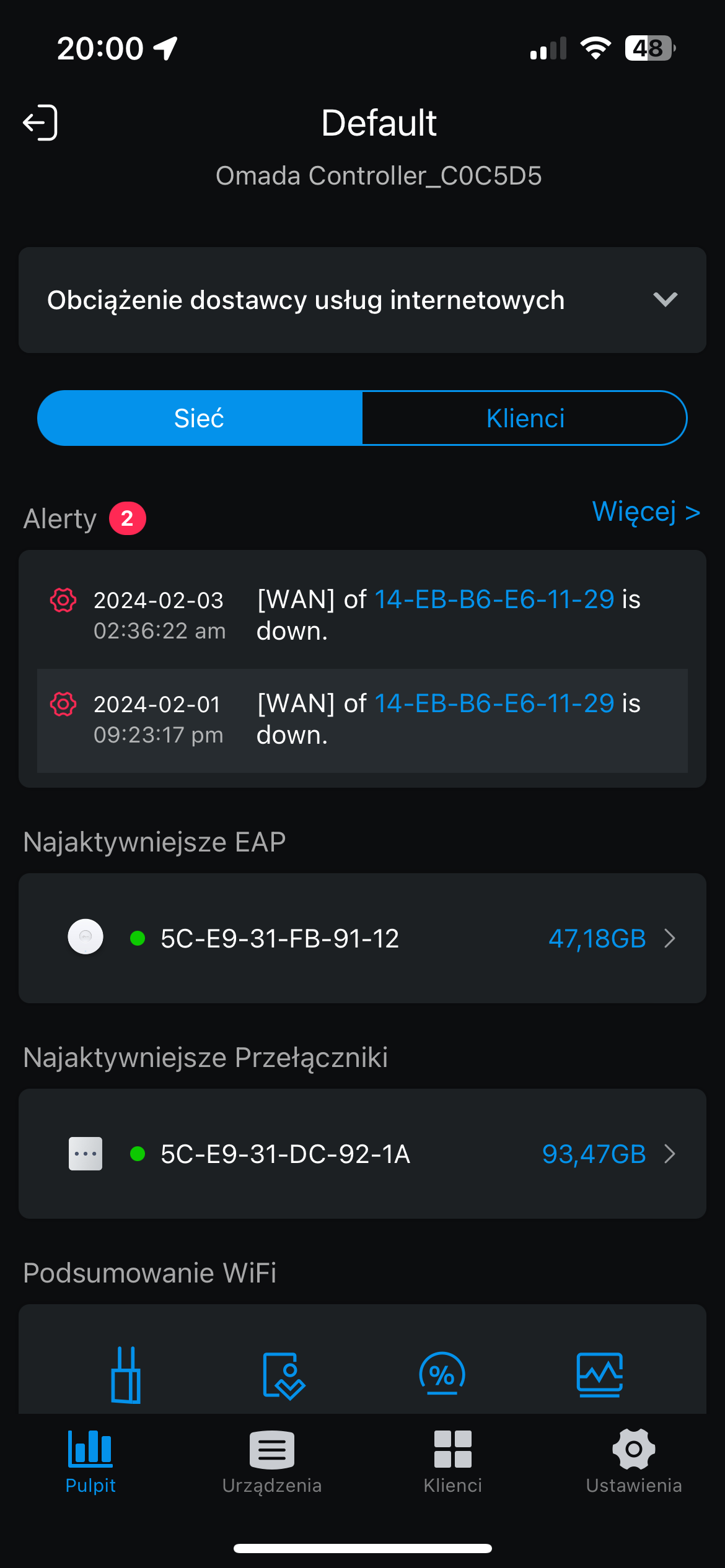 Pomijając początkowe kłopoty, raz skonfigurowana sieć działała zasadniczo bezobsługowo. Pojawienie się problemów z połączeniem może być sygnalizowane – powiadomieniem push w aplikacji albo emailem. Bieżący stan sieci można sprawdzić dokładnie z panelu kontrolnego, w którym sprawdzić można obciążenia urządzeń, statystyki wykorzystania poszczególnych łączy (przydatne, zwłaszcza gdy jest ich więcej i korzystamy z funkcji load balancing), czy poszczególnych klientów. W istocie nie mam pewności, czy po prawie 3 tygodniach testów zidentyfikowałem więcej niż połowę możliwości – nigdy bowiem nie administrowałem dużymi sieciami i mimo teoretycznej orientacji co i jak nie mam pewności, jak wiele pominąłem.