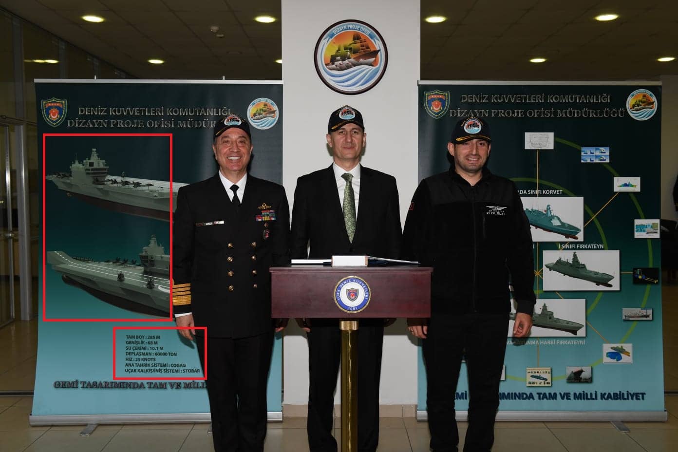 Jednym z głównych punktów wizyty było ujawnienie obrazu, który dostarcza pierwszych informacji na temat projektu i specyfikacji przyszłego lotniskowca. Wynika z niego, że rodzimy lotniskowiec Turcji będzie mierzył 285 metrów długości i wypierał 60000 ton, do tego będzie dzierżył osprzęt STOBAR (Short Take-Off Barrier Arrested Recovery) do prowadzenia operacji lotniczych, a w ruch wprawi go napęd w formie systemu COGAG (Combined Gas Turbine And Gas Turbine), który będzie do rozpędzał do maksymalnie 46 km/h. Co z kolei znajdzie się na jego pokładzie? Równie rodzimy myśliwiec KAAN (dawniej TF-X), który to zostanie najwyraźniej zaadoptowany do użytku na lotniskowcach. To jednak odległe czasy, choć Turcja ponoć nie stawi czoła temu wyzwaniu w pojedynkę, bo w budowie lotniskowca może pomóc państwu hiszpańska stocznia Navantia.