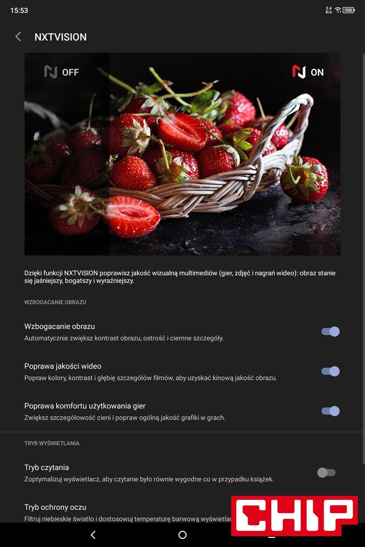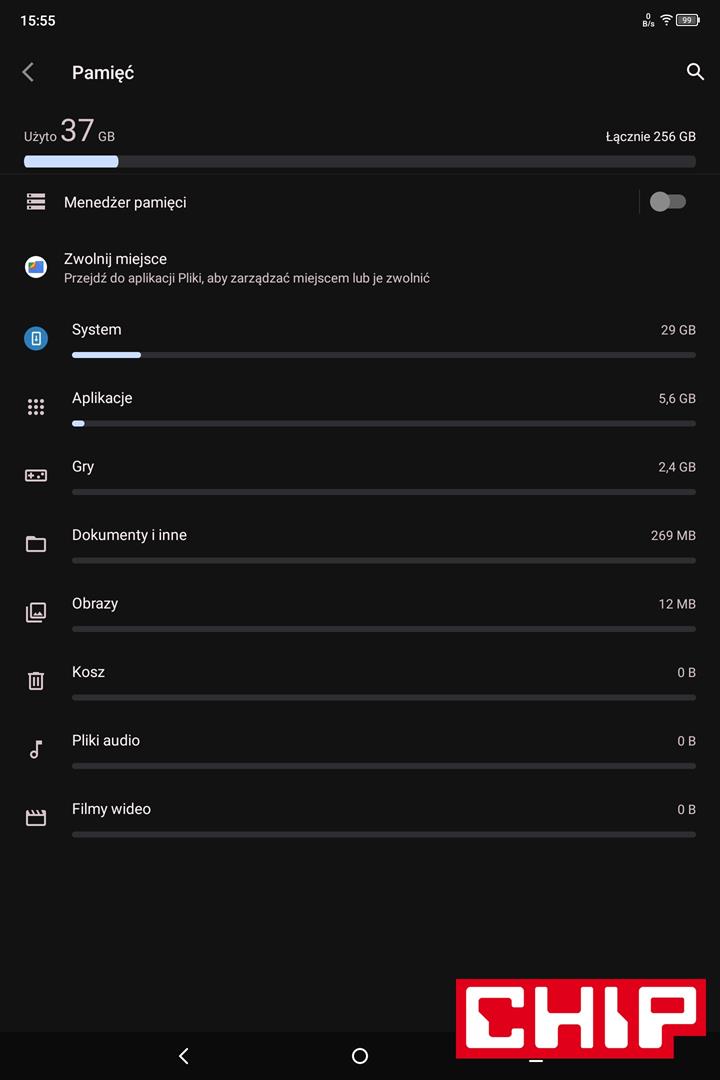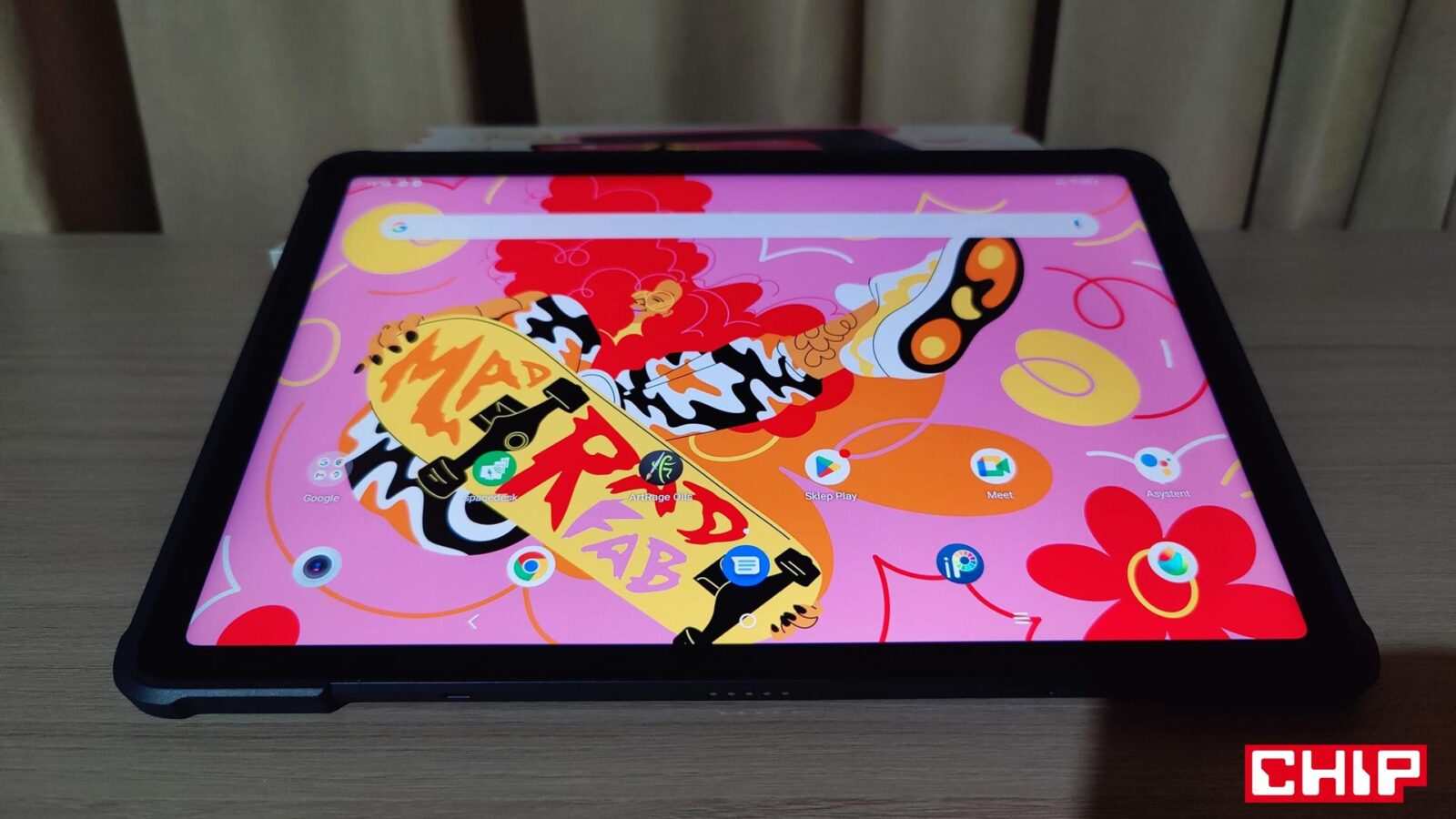 O ile krawędzie tabletu są raczej standardowo zaaranżowane (port USB-C do ładowania mocą do 18W, przycisk on/off na górnej krawędzi, dwuczęściowy przycisk regulacji głośności na pewnym boku), tak powinniśmy docenić, że mimo przyzwoitej 256-GB pamięci masowej (do użytku mamy około 220 GB), możemy rozszerzyć ją o 512-GB kartę pamięci. Producent postarał się również o obecność nie tylko dwóch standardowych, a czterech przyzwoitej jakości głośników, które trudno zasłonić podczas typowego użytkowania. Najważniejszy element to oczywiście niezmiennie ekran i to ekran nie byle jaki, bo choć 60-Hz odświeżaniem i stosunkowo wysoką rozdzielczością nie powala (1440 x 2160), jak na 12,2-calowy wyświetlacz o proporcjach 3:2 (stąd gęstość pikseli rzędu 213 DPI), to wykonaniem już wręcz przeciwnie.