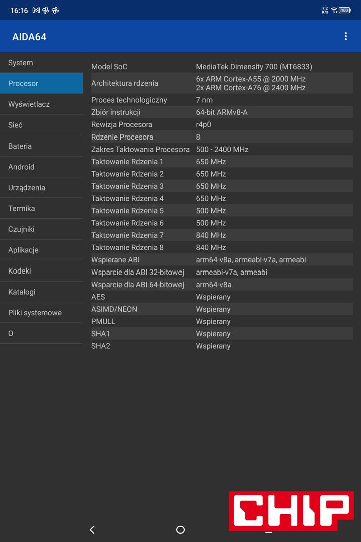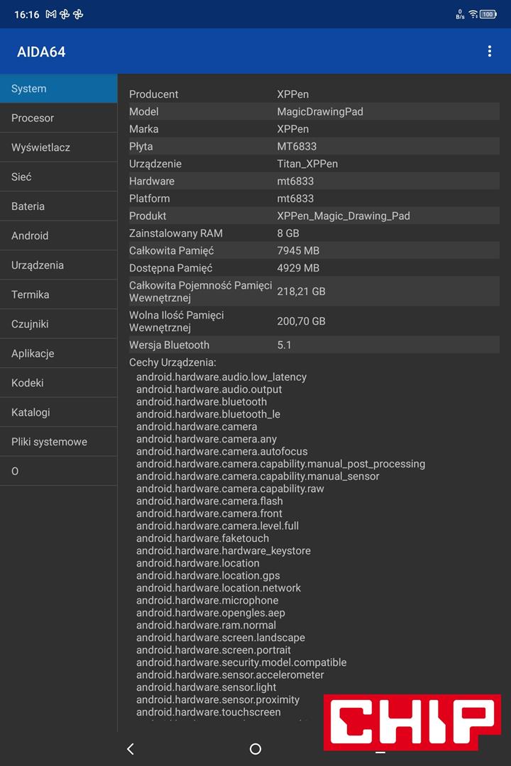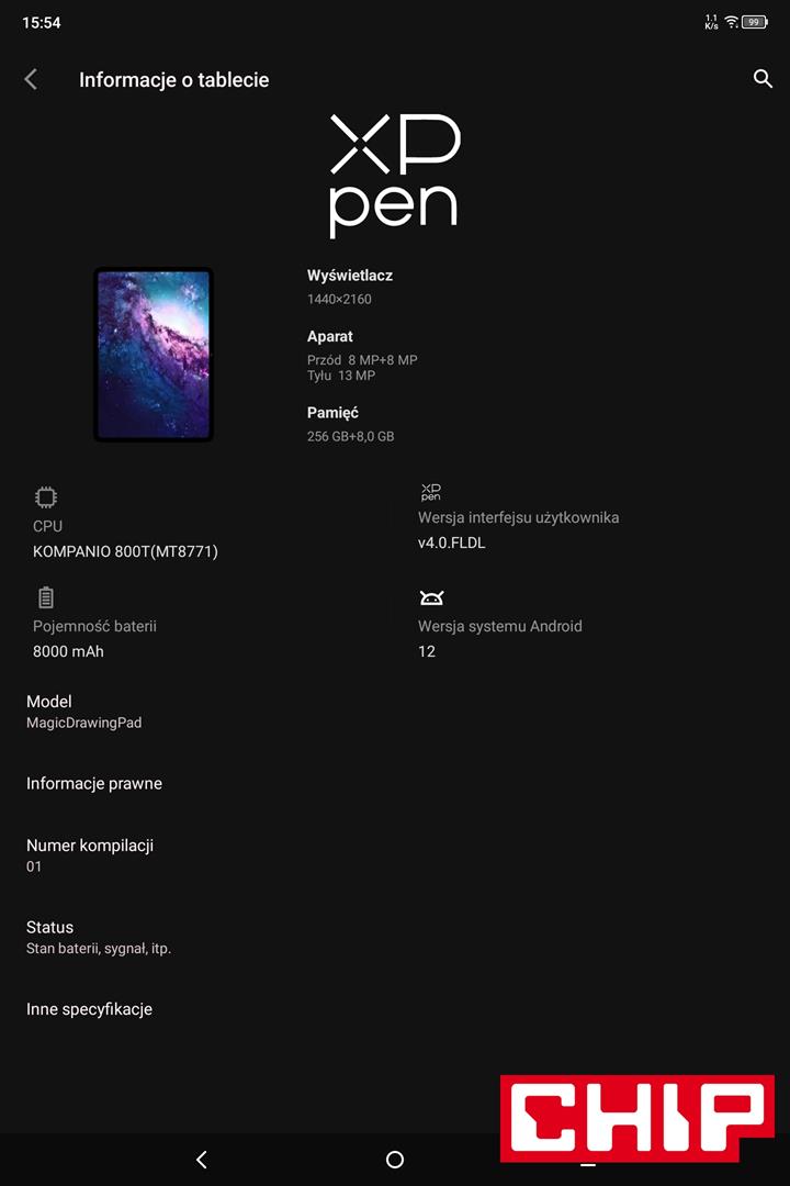 Magic Drawing Pad nie jest też specjalnym demonem wydajności ze swoim SoC MediaTek Dimensity 700, a więc układem z 2020 roku, który jest produkowany z wykorzystaniem 7-nm technologii oraz dzierży dwa rdzenie Cortex-A76 (o taktowaniu 2,2 GHz) i sześć Cortex-A55 (2 GHz) na bazie technologii ARMv8. Za wyświetlanie obrazu odpowiada procesor graficzny Mali-G57, a za płynne działanie 8 GB pamięci RAM.
