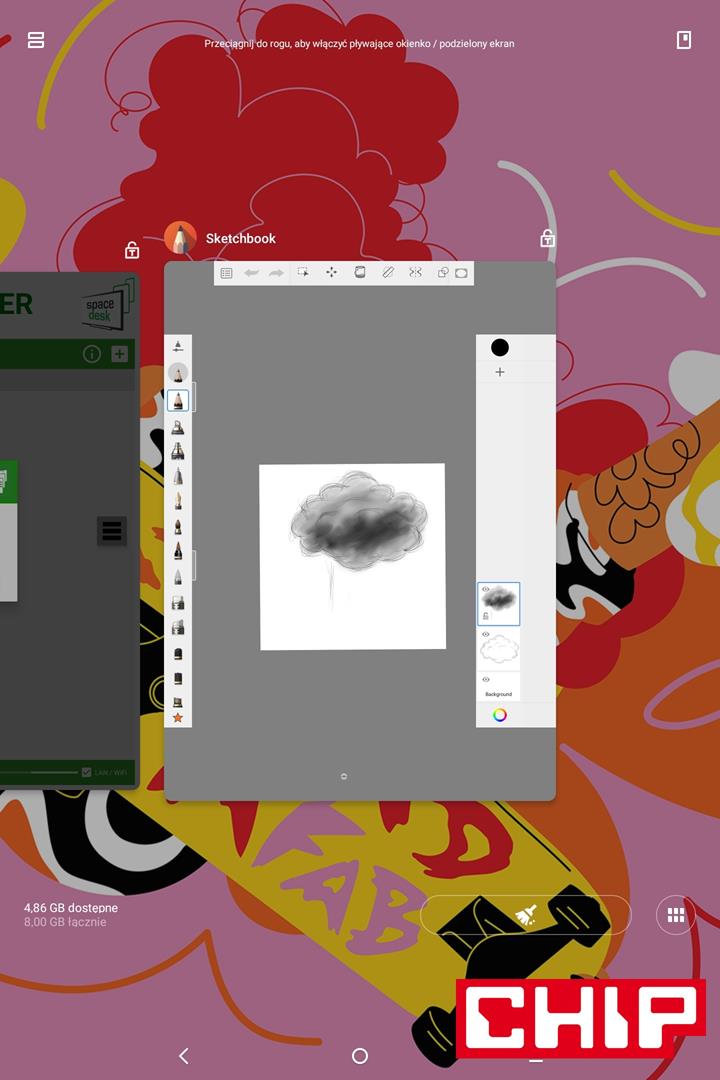 W przypadku pracy stacjonarnej i połączeniem z laptopem lub komputerem (możemy to zrealizować np. aplikacją SpaceDesk) Magic Drawing Pad pokazuje swoje dwa oblicza. W przypadku połączenia bezprzewodowego zrobicie z niego wyłącznie drugi ekran na mniej dynamiczne treści, a w przypadku połączenia przewodowego, będziecie mogli na nim bezproblemowo rysować np. w Photoshopie. Podczas gdy bezprzewodowe połączenie jest obarczone ogromnym opóźnieniem, tak to przewodowe cechuje się wprawdzie znacznie mniejszym, ale i tak wyczuwalnym, co na dłuższą metę zwyczajnie męczy.