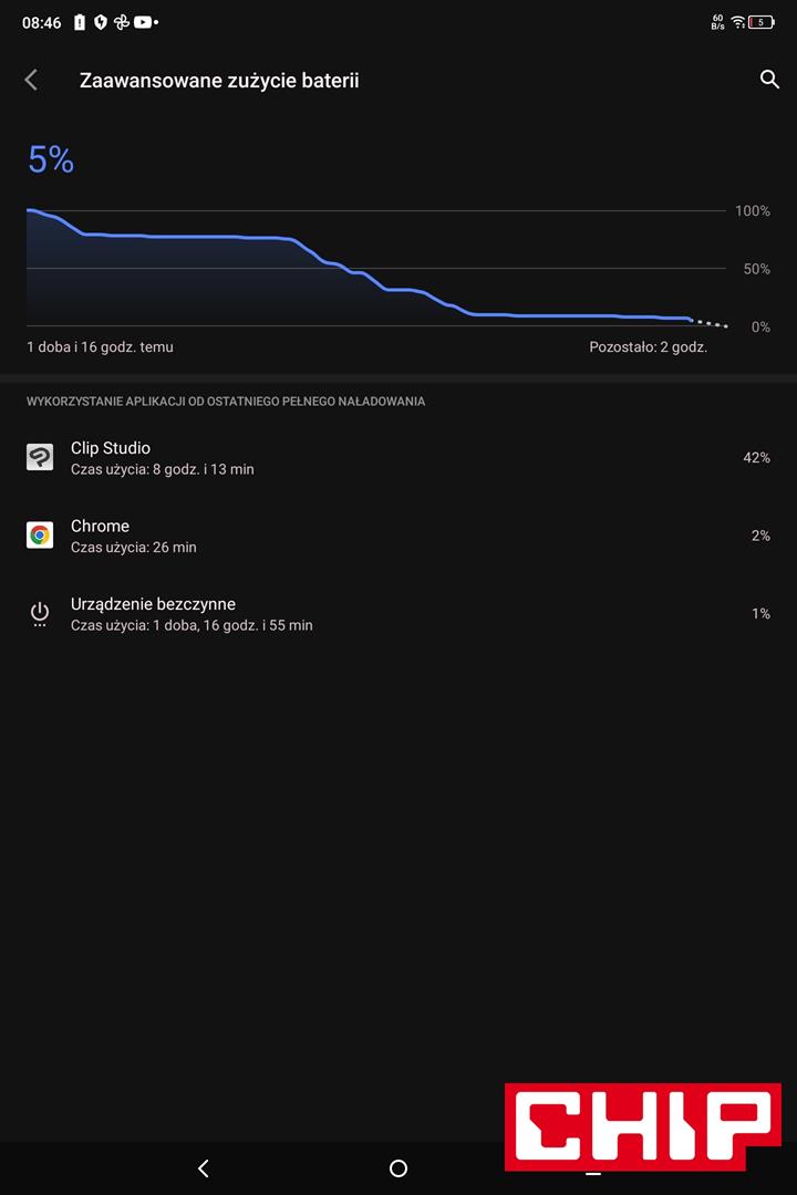 Takie połączenie nie jest specjalnie fenomenalne w kwestii surowej wydajności, ale do rysowania w wysokich rozdzielczościach wystarcza. Co jednak najważniejsze, nie jest energożerne i dzięki temu właśnie 8000-mAh akumulator tego tabletu jest w stanie wytrzymać ponad 8 godzin rysowania na jednym ładowaniu, które od 5 do 80% trwa około dwie godziny przy jednoczesnej pracy.