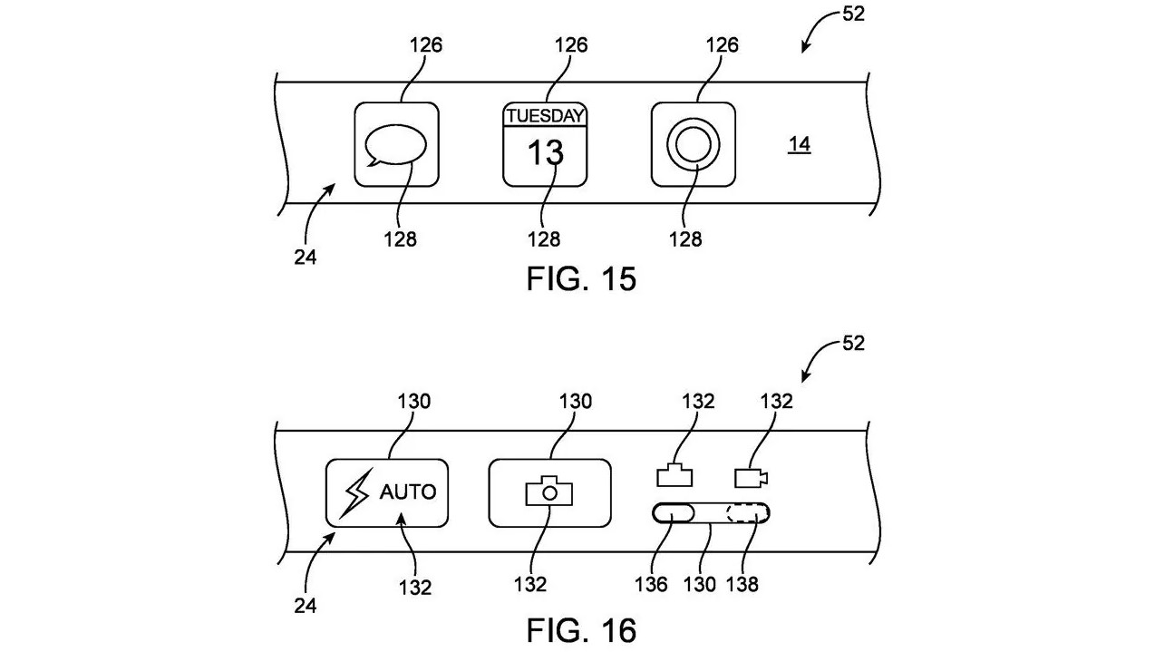 Z dokumentacji patentowej dowiadujemy się, że Apple wpadł na pomysł wyposażenia swoich sprzętów w boczny, dotykowy pasek umieszczony w jednej z ramek. Trochę przypomina to TouchBar, stosowany kiedyś w MacBookach Pro, ale zapewne z szerszym zakresem funkcjonalności. Taki boczny wyświetlacz miałby służyć wielu celom. Przede wszystkim wyświetlałby przyciski sterujące i interfejs użytkownika, a ponadto dawałby podgląd takich informacji, jak żywotność baterii czy pogoda oraz np. możliwość sterowania muzyką.