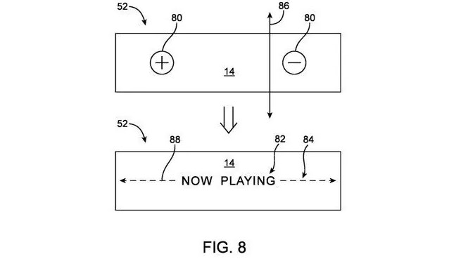 Wśród jednych z przykładów zastosowania Apple podał właśnie wariant z odtwarzaczem, gdzie na tym bocznym ekranie, wyświetlony byłby interfejs odtwarzacza, wraz z tytułami utworów i elementami sterującymi. Coś jak ekran odtwarzaczach MP3. Oczywiście zakres zastosowań takiego dodatku byłby naprawdę szeroki, bo zamiast zastępować fizyczne przyciski wirtualnymi, w tym przypadku taki ekran można byłoby konfigurować do woli i zapewne trudno byłoby znaleźć dwa iPhone’y z identycznie dostosowanym panelem bocznym.