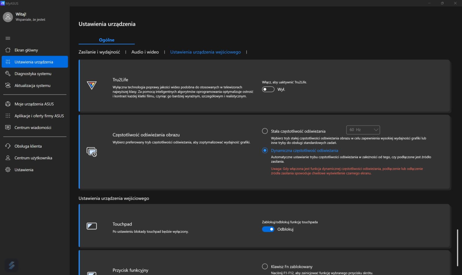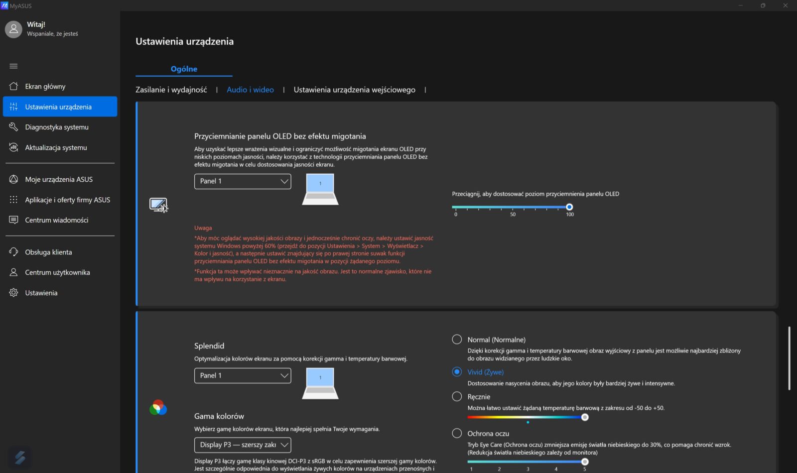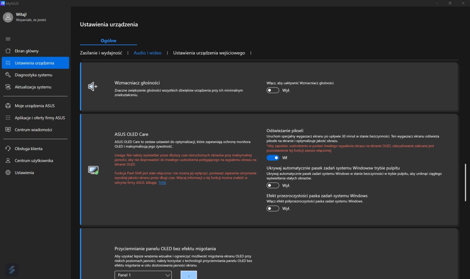 Podczas gdy ScreenXpert ułatwia zarządzanie laptopem poprzez m.in. specjalny widżet, usprawniający m.in. proces ustawiania różnych aplikacji na ekranie (oferuje też predefiniowanie grup roboczych), MyASUS to już rozległy HUB. W nim znajdziecie cztery najważniejsze zakładki, w których znajdziecie możliwość przeprowadzenia aktualizacji, zdiagnozowania sprzętu i wreszcie poczynienia szeregu ustawień w zakresie zasilania i wydajności, audio i wideo oraz urządzeń wejściowych. O czym mowa? Przede wszystkim o specyfice działania obu wyświetlaczy OLED, systemu audio harman/kardon w wersji Premium (jest szalenie głośny, ale przytłumiony, bo wydobywa się z obudowy, a nie przez jakiekolwiek otwory), czy mikrofonów pod kątem zbierania dźwięku. Nie zabrakło tam również opcji związanej z ochroną akumulatora oraz dostosowywania trybu wydajności, więc ASUS postarał się, aby każdy z nas mógł dostosować swojego nowego Zenbooka idealnie pod siebie.