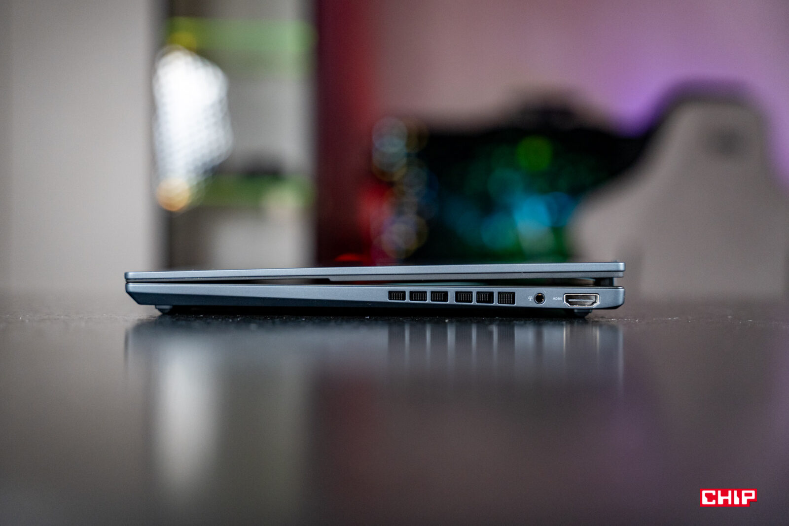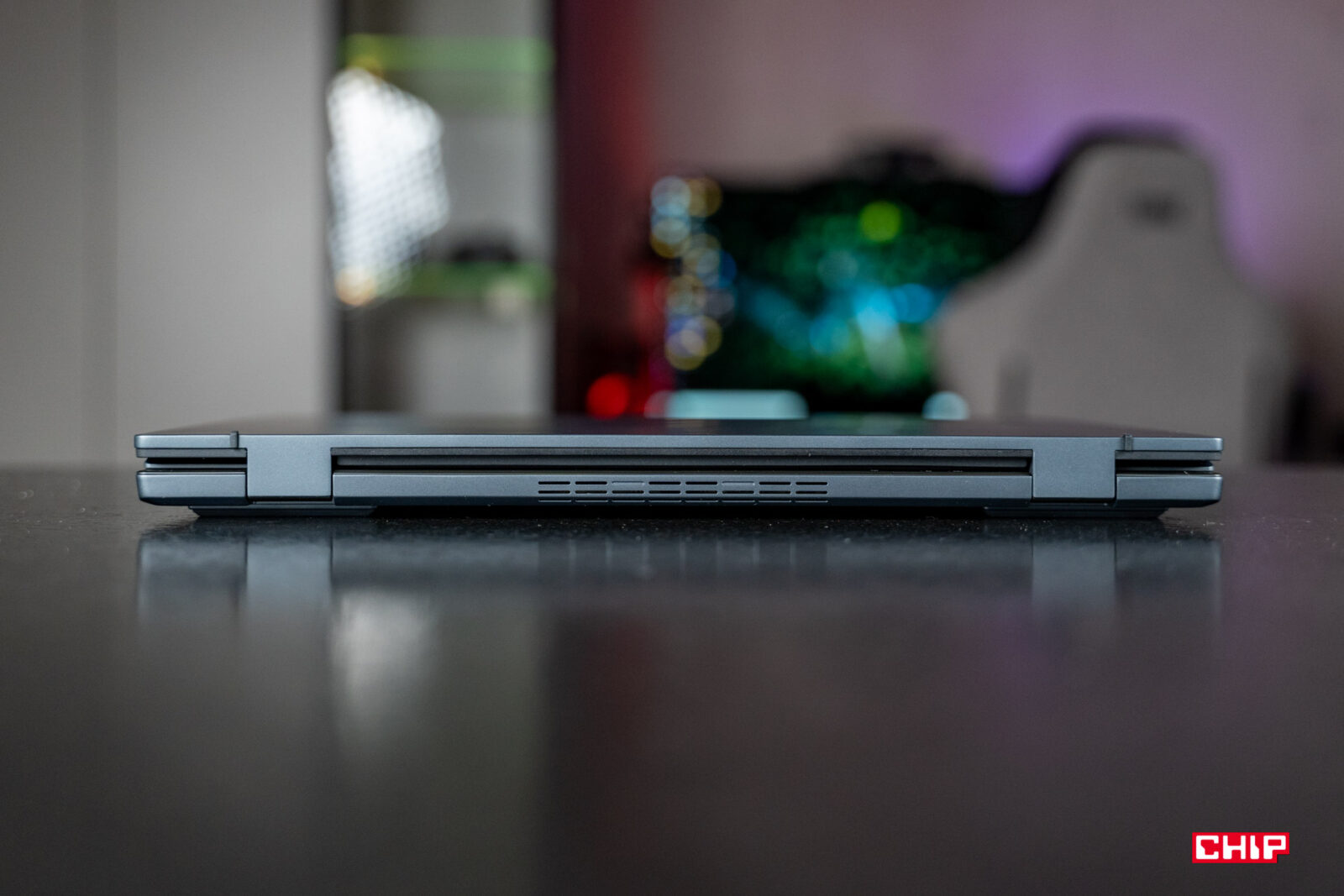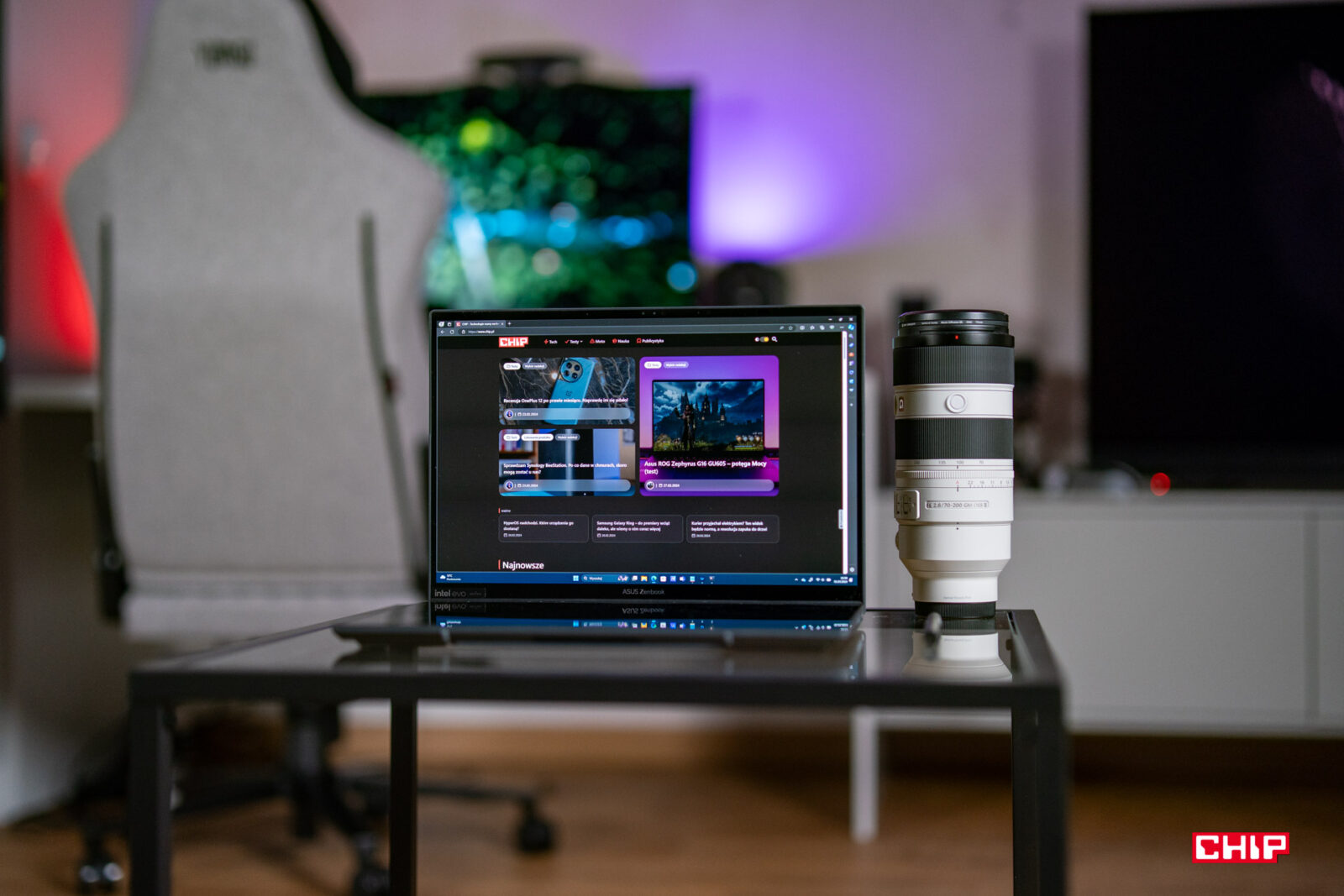 Czy to powinno nas dziwić, jak na 22-rdzeniowy procesor z 32 GB LPDDR5X? Na pewno nie, o ile wiemy, że wśród tych rdzeni znajduje się sześć pełnoprawnych rdzeni Performance skupionych na zapewnianiu maksymalnej wydajności, 8 rdzeni Efficient o lepszym stosunku efektywności energetycznej do obliczeniowej oraz dwa rdzenie Efficient o jeszcze mniejszej prądożerności i tym samym wydajności. Z drugiej strony w zamian otrzymujemy rzeczywiście energooszczędnego laptopa, którego system chłodzenia nawet na najwyższym obciążeniu szumi tak, jak pokojowy wentylator ustawiony na najniższym, a nie najwyższym poziomie prędkości (głośniki na 25 procentach głośności przebijają generowany przez niego hałas).