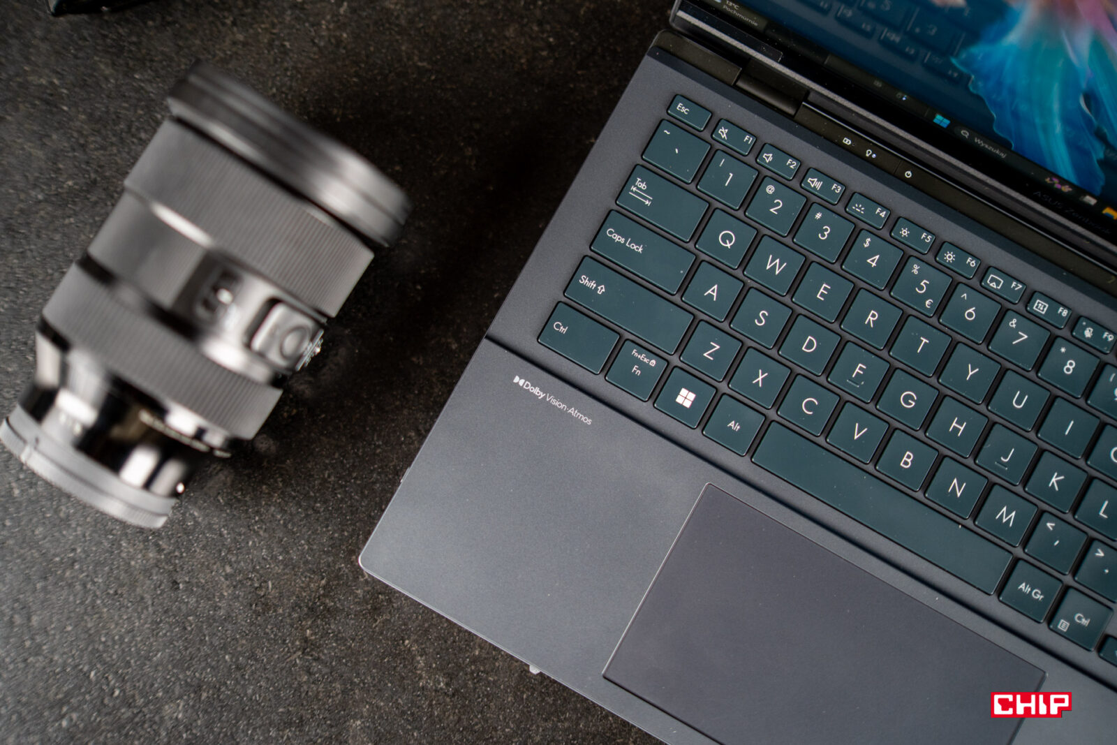 To wszystko sprawia, że Zenbook Duo UX8406 jest sprzętem nie tylko fenomenalnie zaprojektowanym, ale też wykonanym wręcz wzorowo. Nawet najbardziej wątpliwy element, czyli mocowana na magnesach klawiatura z własnym akumulatorem, która łączy się z laptopem albo przewodowo (przez zestaw pinów), albo bezprzewodowo (Bluetooth), prezentuje się świetnie i to do stopnia, w którym sprawia wrażenie integralnej części klawiatury, a to nie lada wyczyn. Podobnie zresztą jak to, że połączenie Bluetooth jest ustanawiane z laptopem praktycznie natychmiast po odpięciu klawiatury z klawiszami o skoku 1,4 mm i z precyzyjnym touchpadem odpornym na odciski palców. Zastosowana czcionka jest łatwa do odczytania i jednoznaczna nawet w przypadku funkcji dodatkowych, a do tego jest efektownie podświetlana na kolor biały w inteligentny sposób, bo na podstawie światła w otoczeniu.