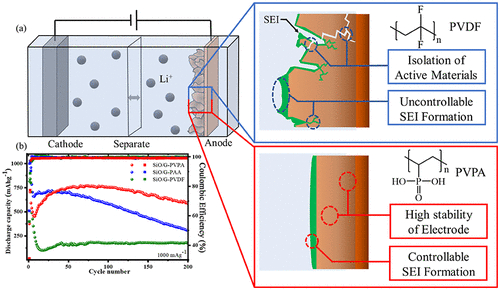 Podczas eksperymentów z trzema spoiwami oceniano ich właściwości elektrochemiczne. Najlepszym okazał się związek PVPA, który wykazywał największą przyczepność do podłoża miedzianego (ta cecha przyczynia się do wzrostu trwałości akumulatora). Ponadto po 200 cyklach ładowania ogniwo z PVPA pozostawało w lepszym stanie od pozostałych, nie wykazując oznak złuszczania się anody.