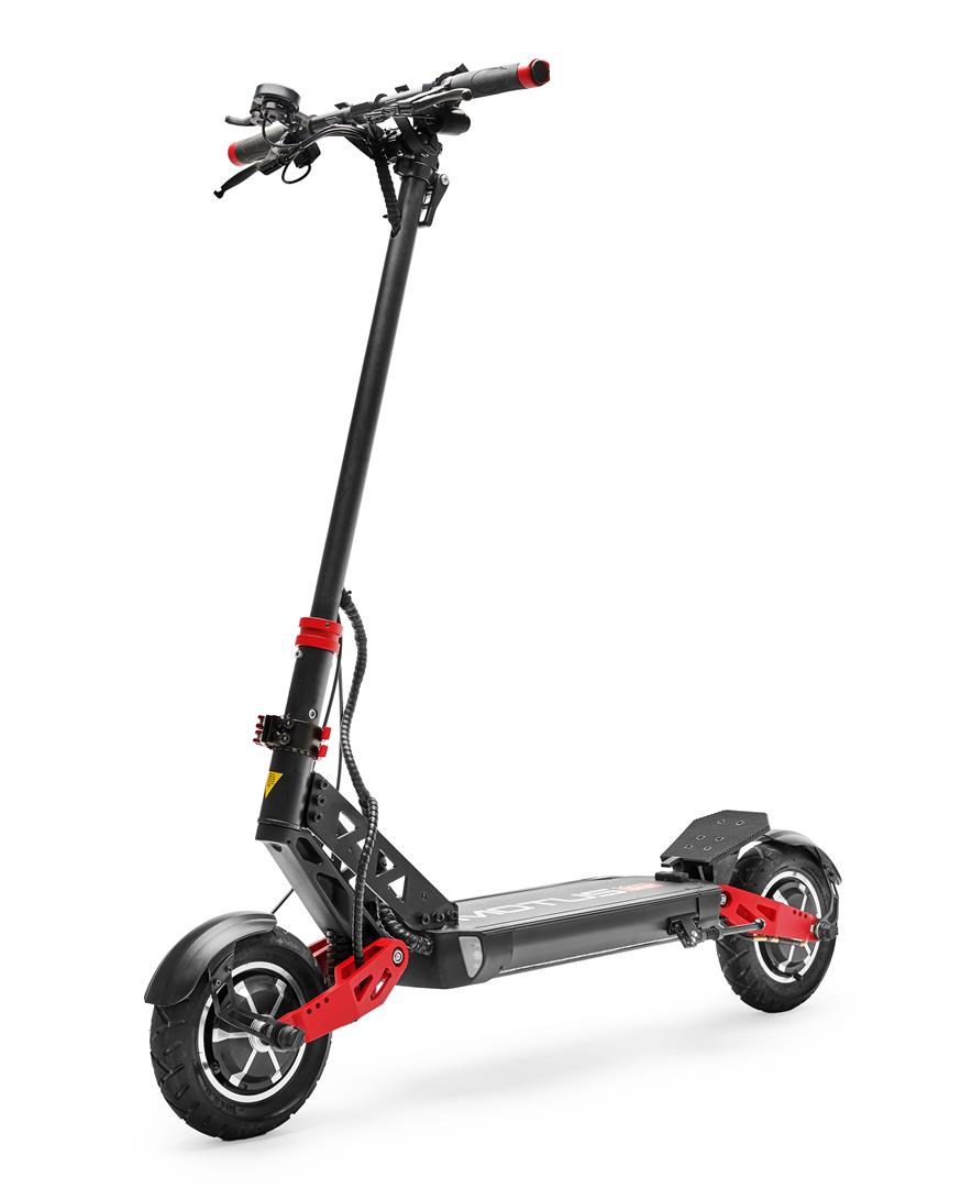 Jest to bowiem przykład hulajnogi, po której można już oczekiwać ogromnego potencjału w pokonywaniu nawet wymagającego terenu bez aż tak dużego poświęcania komfortu jazdy. Kute aluminium, waga rzędu 29 kg i 150-kg maksymalny udźwig potwierdzają z kolei, że Motus PRO 10 Sport 2021 wyposażony w wyświetlacz LCD na kierownicy nie popsuje się przy pierwszym lepszym wyzwaniu terenowym. Nie jest to również sprzęt dla początkujących, bo rozwijana przez niego prędkość maksymalna rzędu 66 km/h zrobi wrażenie nawet na zaawansowanych użytkownikach takich jednośladów.