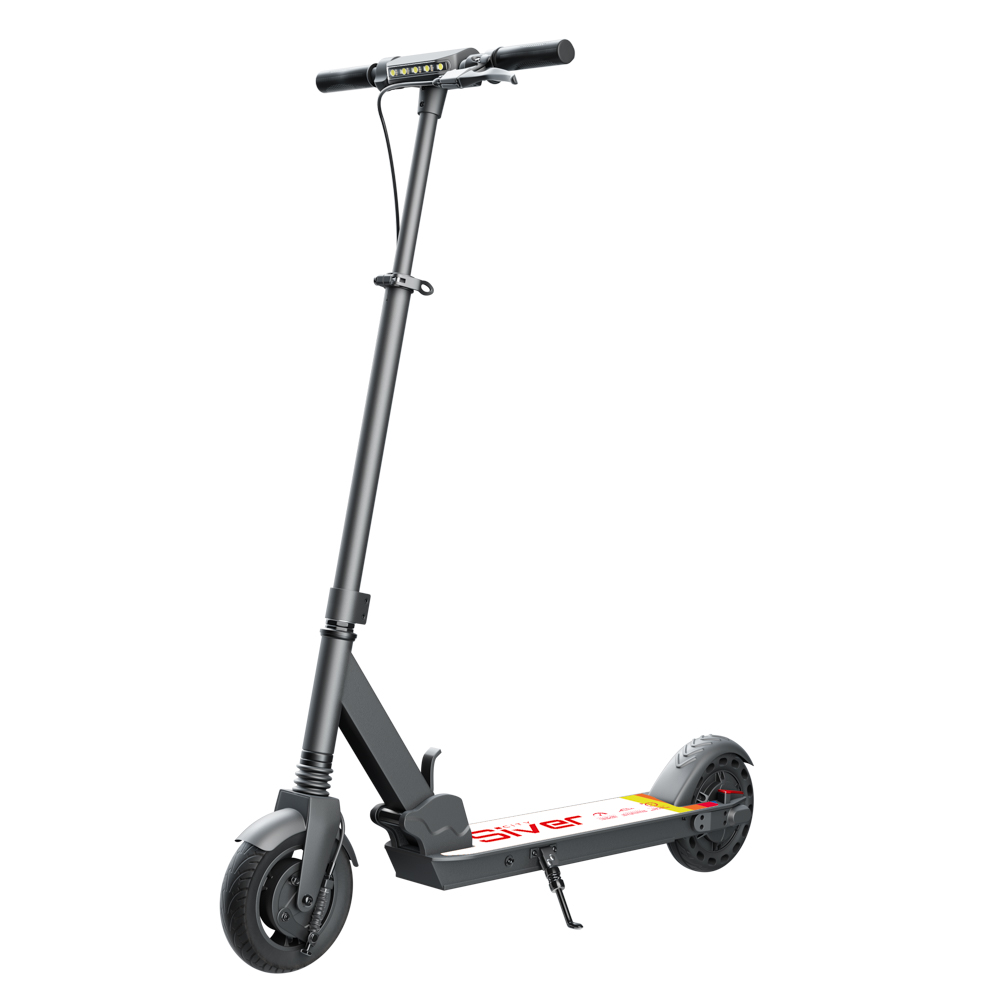 Hulajnogę elektryczną Siver możecie w łatwy sposób złożyć i przetransportować, jako że waży tylko 13,1 kilogramów, choć mimo tej niskiej wagi, wytrzymuje i tak spore obciążenia, bo do aż 100 kg. Podczas jazdy nie musicie się z kolei bać o bezpieczeństwo, a to za sprawą trzech trybów wydajności, skutecznego hamulca czy jasnych, czerwonych świateł stopu na tyle. Wszelkie szczegóły na temat stanu hulajnogi podejrzycie z kolei na wbudowanym w kierownicę wyświetlaczu z przyciskiem do kontrolowania stanu hulajnogi, więc jak na kwotę “do tysiaczka” nie ma co narzekać.