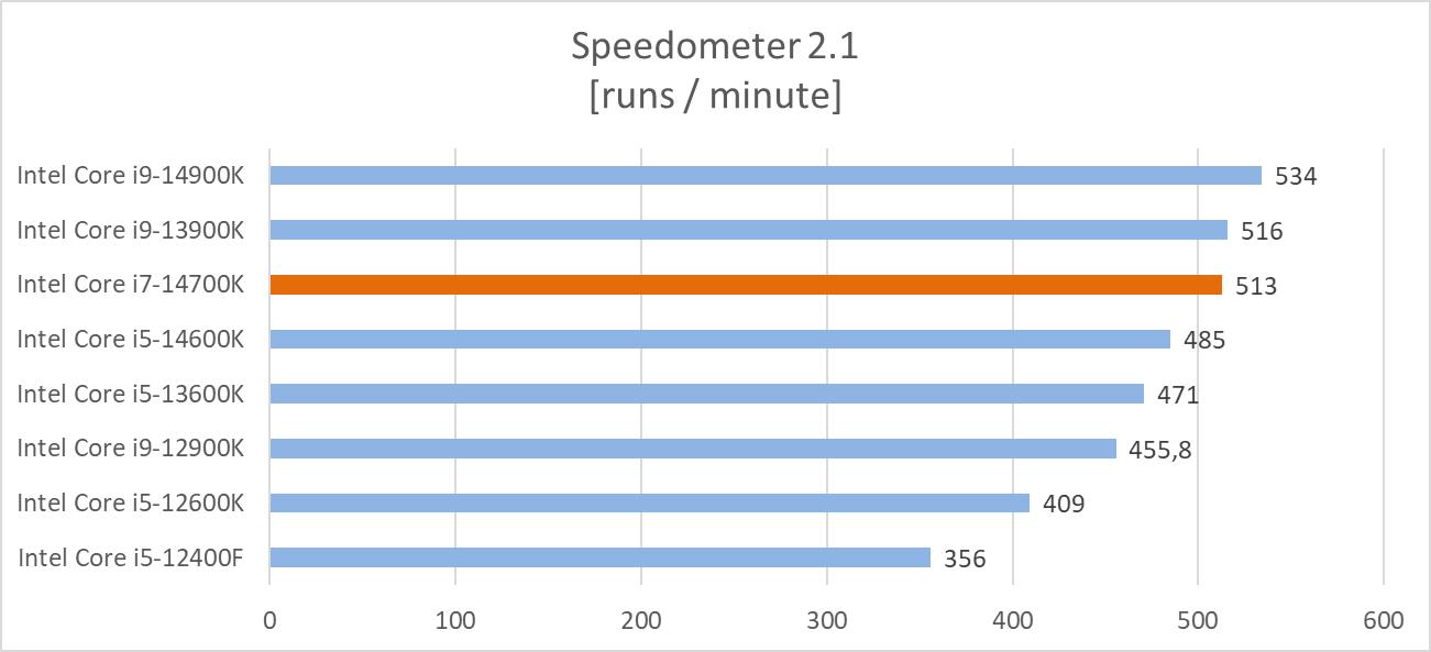 Speedometer 2.0 mierzy responsywność aplikacji internetowych. Jego plusem jest symulowanie działań wykonywanych przez użytkownika, co pozwoli na ocenienie wydajności różnych procesorów. Tutaj w testach wykorzystałem przeglądarkę Google Chrome.
