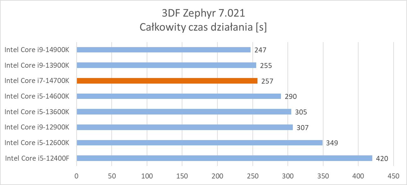 3DF Zephyr służy do fotogrametrii, czyli do rekonstrukcji modeli 3D na podstawie zdjęć. Tutaj wykorzystałem wbudowany benchmark pozwalający na ocenienie wydajności procesorów.