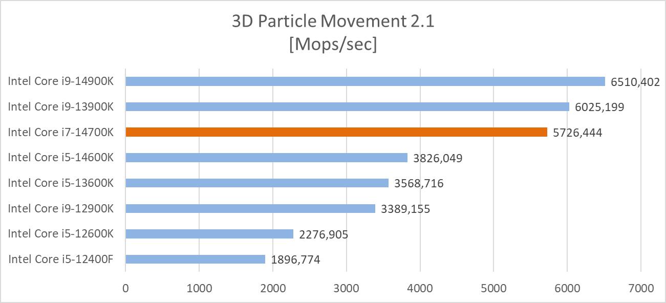 3DPM został opracowany przez serwis Anandtech. Symuluje on sześć różnych rodzajów ruchów cząstek w trójwymiarze. Poniżej znajdziecie ogólny wyniki testu podany jako mops/sec.