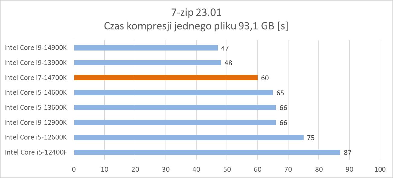 7-Zip to darmowy program do kompresji plików, który jest często wykorzystywany przez użytkowników komputerów. W teście sprawdziłem czasy pakowania (do formatu .7z) paczki 4053 plików o wielkości 8,76 GB oraz jednego pliku o wielkości 93,1 GB.