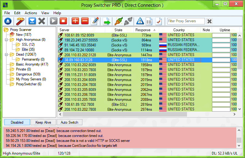 - Proxy Switcher – aplikacja ukrywająca IP oraz zmieniająca serwery proxy, co bardzo pozytywnie wpływa na ukrycie prawdziwego adresu. Można ustawić konfigurację domyślną lub dokonywać zmian w locie. Posiada mechanizmy pozwalające na przetestowanie stopnia ochrony. Dostępna w płatnych edycjach Standard oraz Pro.