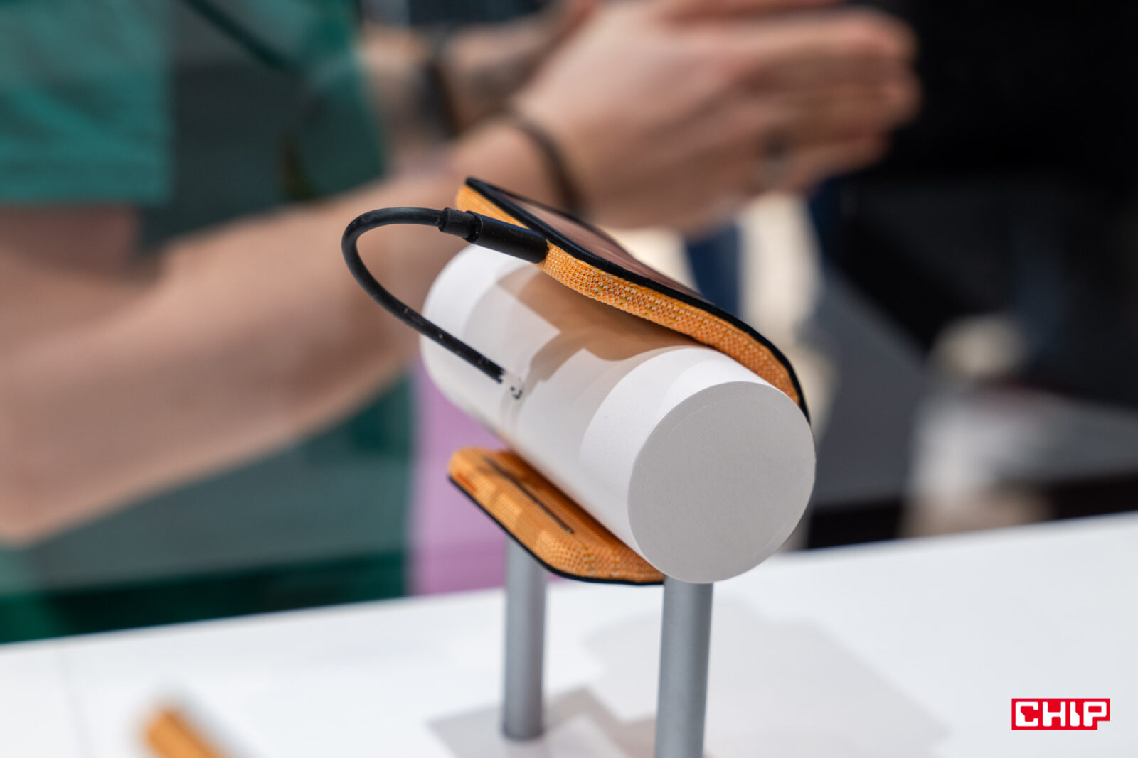 Skoro już wspomniałem o oprogramowaniu, warto też zahaczyć o AI, które odmieniane jest przez wszystkie przypadki na całych targach. W przypadku Motoroli i Lenovo na stoisku mogliśmy zobaczyć raczej przemysłowe zastosowania sztucznej inteligencji, ale elastyczny koncept dostał swoją sztuczkę. Dzięki Generatywnym Motywom smartfon stworzy motyw w oparciu o zdjęcie. Szczególnie dobrze widać to przy tworzeniu motywu w oparciu o wzorzystą sukienkę. Powstała tapeta miała nie tylko adekwatne kolory, ale i wzory, które nawiązują do ubrania.