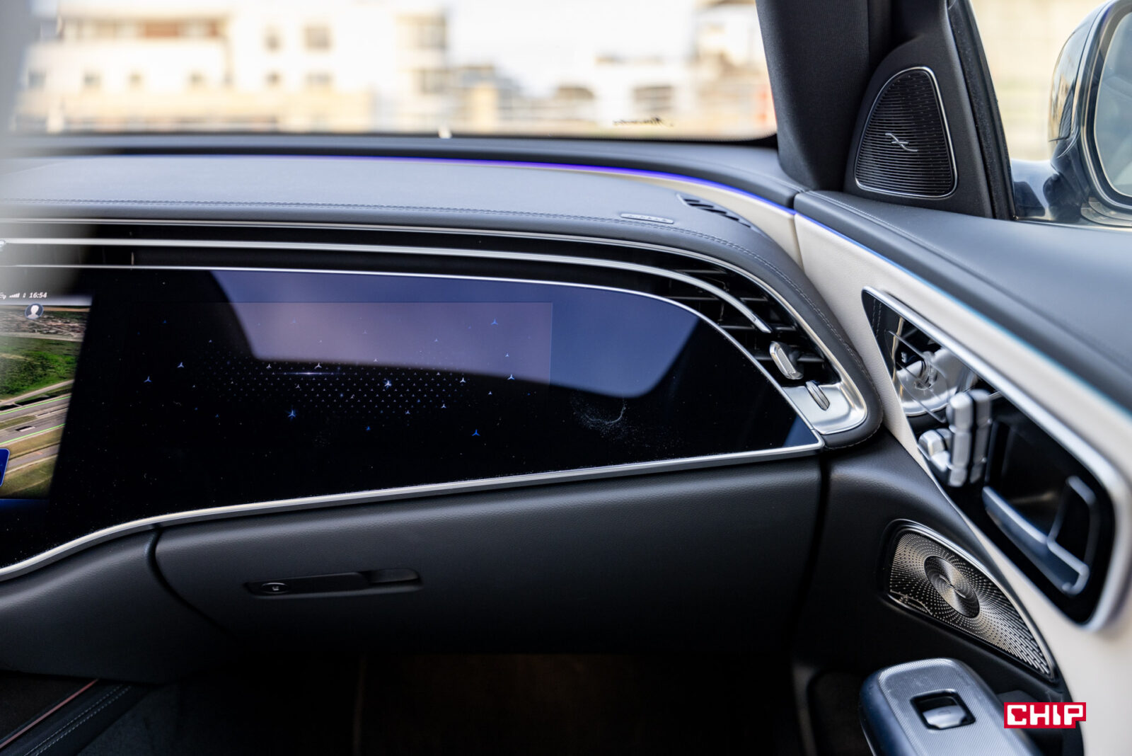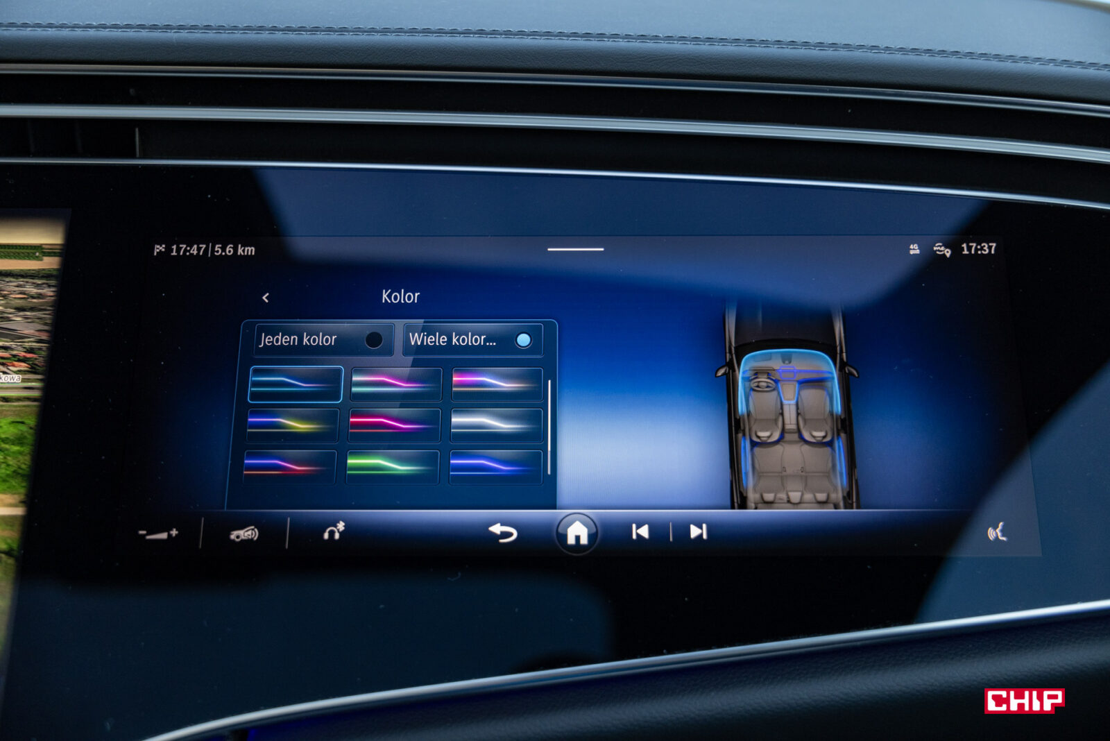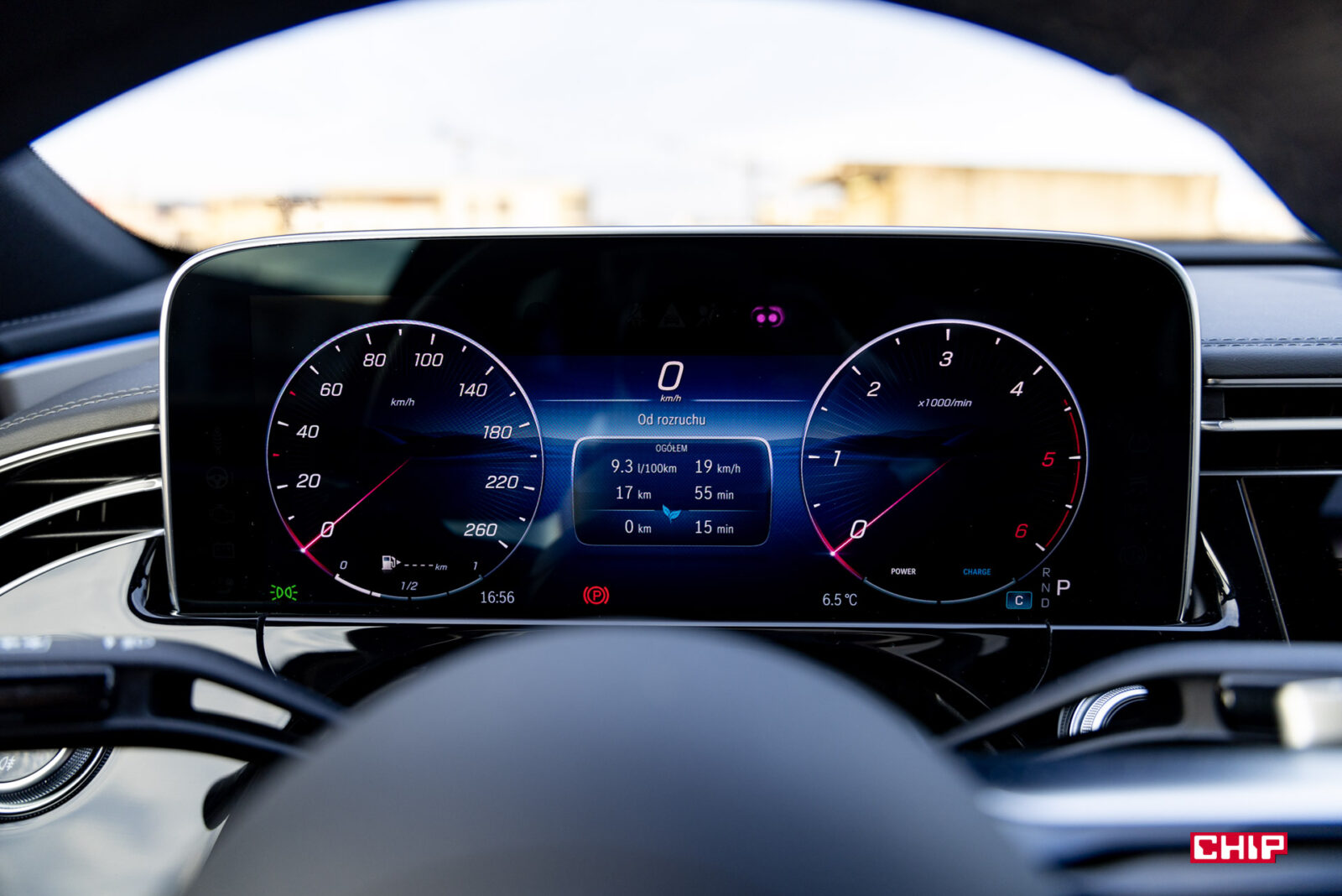 Wyświetlacz Head-up, podświetlana osłona chłodnicy, panoramiczny dach przesuwny, klimatyzacja automatyczna THERMOTRONIC, MBUX (asystent wnętrza), MBUX Superscreen, wyświetlacz IC 3D, pakiet Energizing, pakiet akustyczny, adaptacyjny asystent świateł drogowych Highbeam Plus, DIGITAL LIGHT z funkcją projekcji, aktywne oświetlenie ambient, system nagłośnienia Burmester 4D, fotel kierowcy regulowany elektrycznie z pamięcią ustawień, pakiet parkowania z kamerą 360°, podgrzewane przednie siedzenia, podgrzewana tylna kanapa, asystent martwego pola, ogrzewanie postojowe, Energizing Air Control, aktywny asystent regulacji odległości DISTRONIC, aktywny asystent układu kierowniczego, aktywny asystent zmiany pasa ruchu, rozszerzona funkcja automatycznego startu w korkach, adaptacyjny tempomat monitorujący ograniczenia prędkości, skrętna tylna oś, zawieszenie pneumatyczne Airmatic, wielofunkcyjna kierownica… Jeśli myślicie, że dużo tego, pozwólcie, że dodam jeszcze jedno – część tych funkcji/asystentów to jedynie hasła, skrywające kolejne zestawy funkcji/asystentów…
