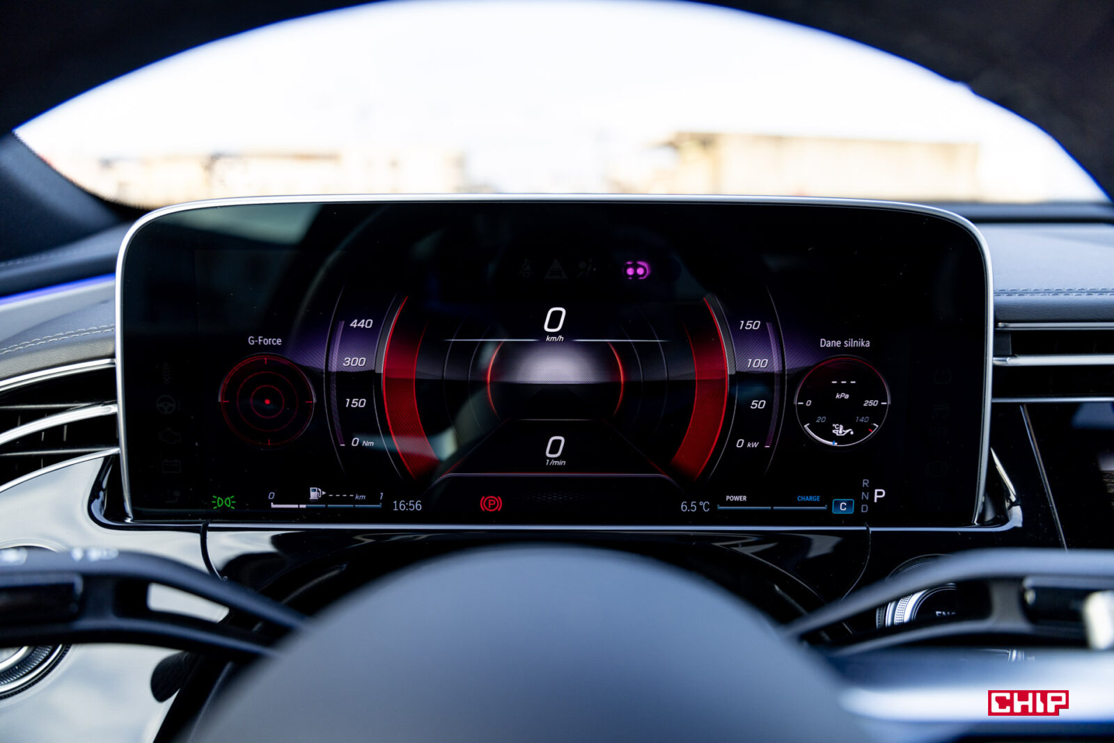 Ekran kierowcy pozwala na bardzo daleką idącą personalizację. Do wyboru mamy różne widoki, do których możemy dorzucić dodatkowe informacje wyświetlane np. pomiędzy zegarami. Wszystko to robimy z poziomu kierownicy, z której sterujemy też informacjami wyświetlanymi na head-upie. Mogą one dublować się z tym, co widzimy na ekranie, albo się wzajemnie uzupełniać.