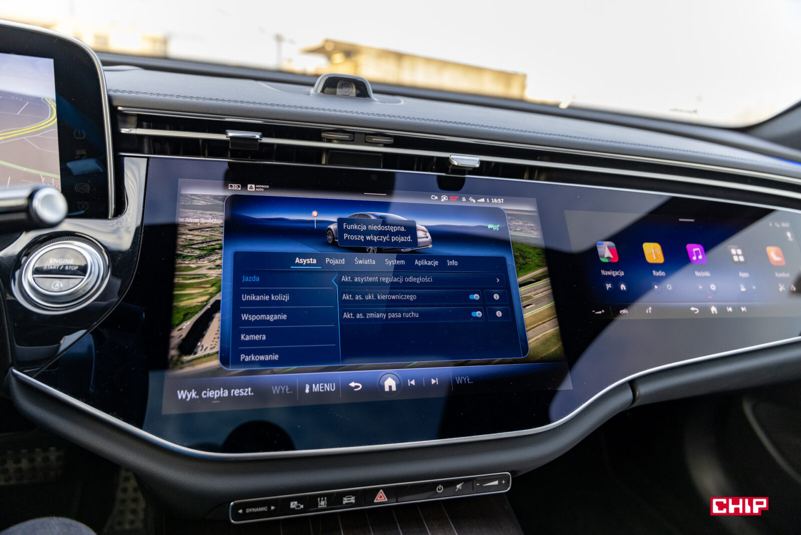 Interfejs na ekranie głównym będzie dobrze znany osobom, które widziały już nowsze modele Mercedesa. Bardzo rozbudowany, ale jednocześnie intuicyjny i prosty w obsłudze. Zrobiony tak, aby najważniejsze funkcje zawsze były pod ręką, były pogrupowane w przemyślany sposób i np. żeby dało się jednym kliknięciem wrócić od razu do widoku bezprzewodowego Android Auto lub Apple CarPlay. A już prawdziwym majstersztykiem jest to, jak Mercedes rozwiązał możliwość wyłączenia systemu ISA, o czym pisaliśmy w tej wiadomości.