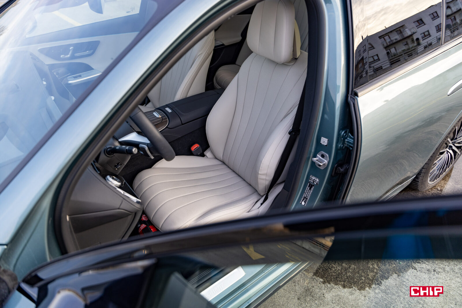 Wspomniałam o komforcie. Tak, to pierwsze słowo jakie przychodzi m i do głowy, kiedy myślę o tym aucie. Pneumatyczne zawieszenie Airmatic wyłapuje wszystko. Kiedy przejeżdżaliśmy z Arkiem przez dobrze nam znane progi bezpieczeństwa, po prostu się śmialiśmy – w klasie E były ledwo wyczuwalne, podczas gdy w pierwszym lepszym SUV-ie można sobie na nich powybijać zęby. Zawieszenie to jednak nie wszystko. Zakres regulacji foteli jest dosyć niedorzeczny, o czym już wspominaliśmy.