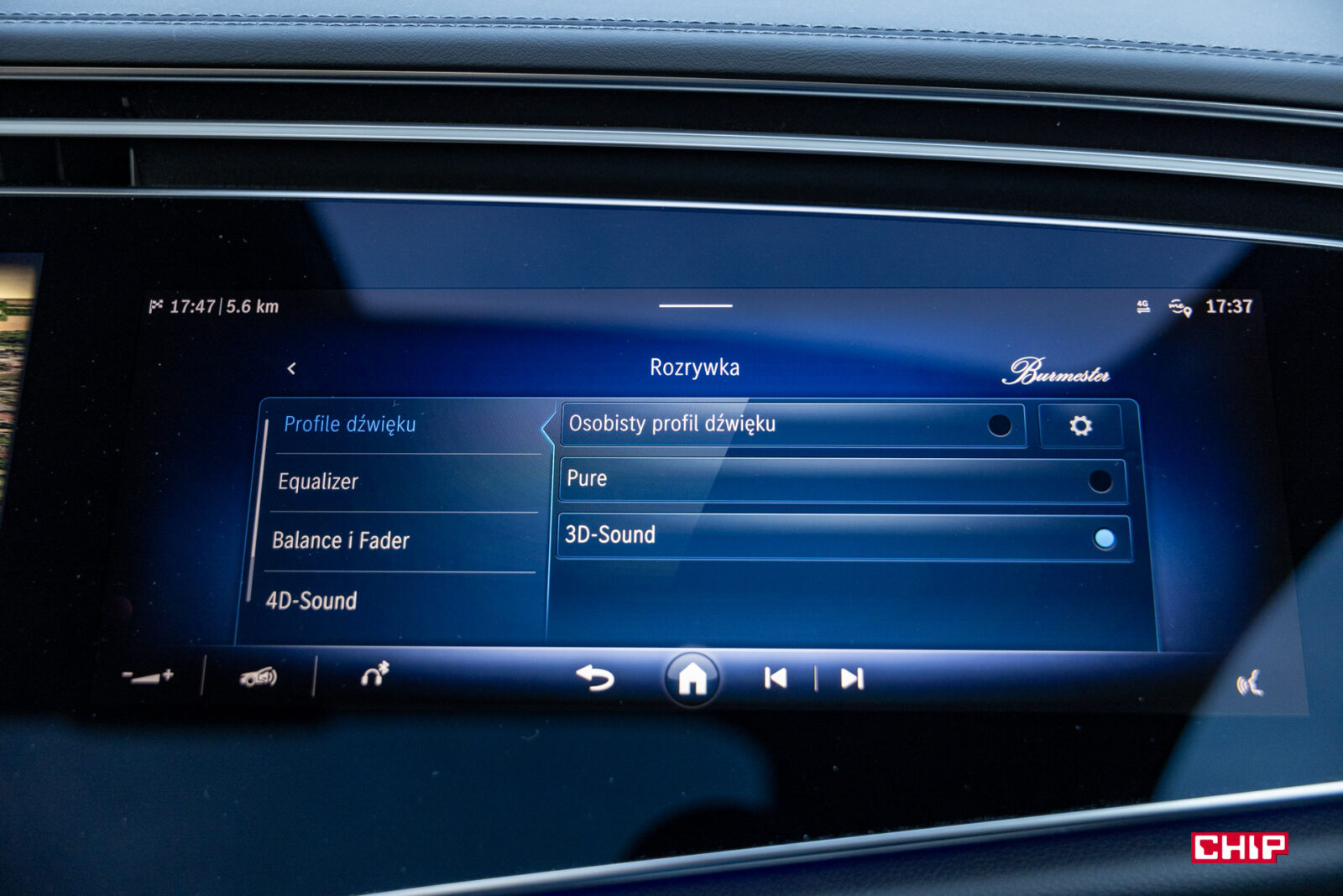Opcjonalny system Burmester z przestrzennymi głośnikami to zdecydowanie jedno z najlepszych tego typu rozwiązań na rynku. Dźwięk jest głęboki, donośny, szczegółowy i faktycznie przestrzenny.