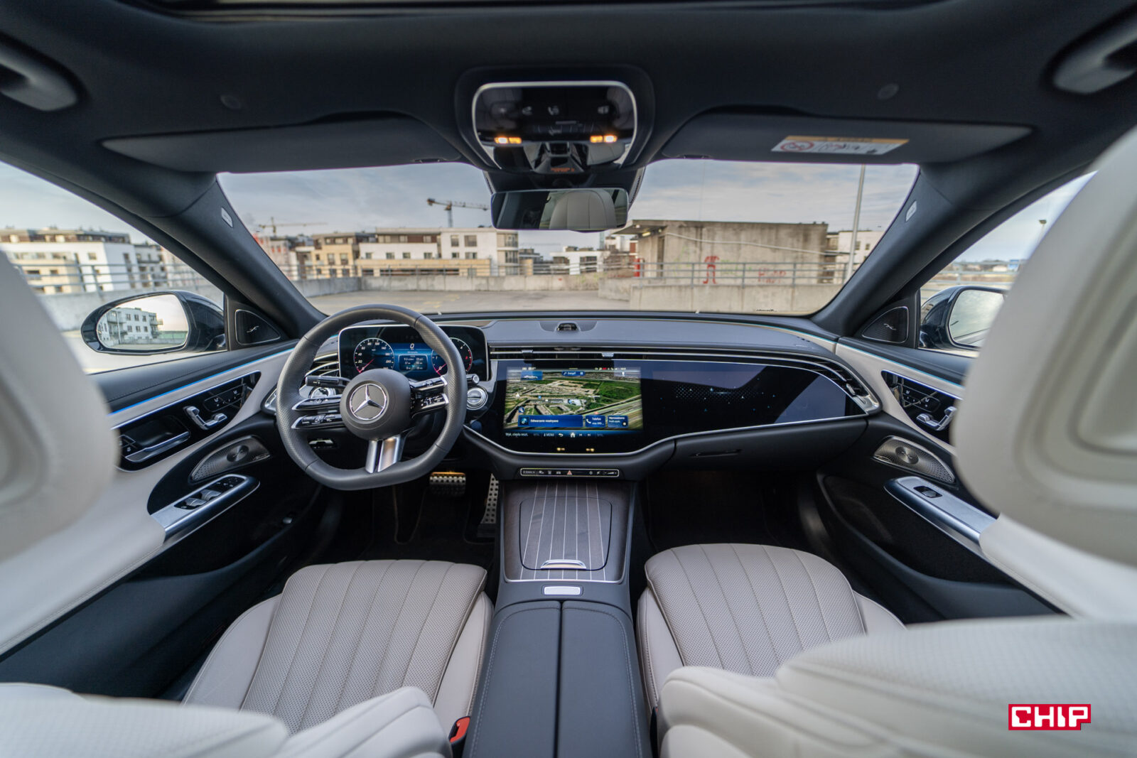 Przesiadając się do Mercedesa E220d zafundowaliśmy naszym kręgosłupom niemałą terapię szokową, bo zamieniliśmy drewnianą ławkę na łóżko wodne. A konkretnie dosłownie godzinę wcześniej oddaliśmy Alpine A110 GT, więc przeskok pod względem komfortu wnętrza i podróżowania był ogromny.