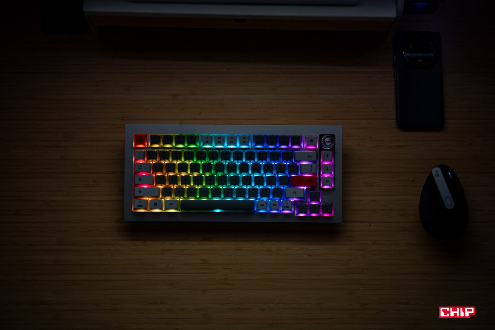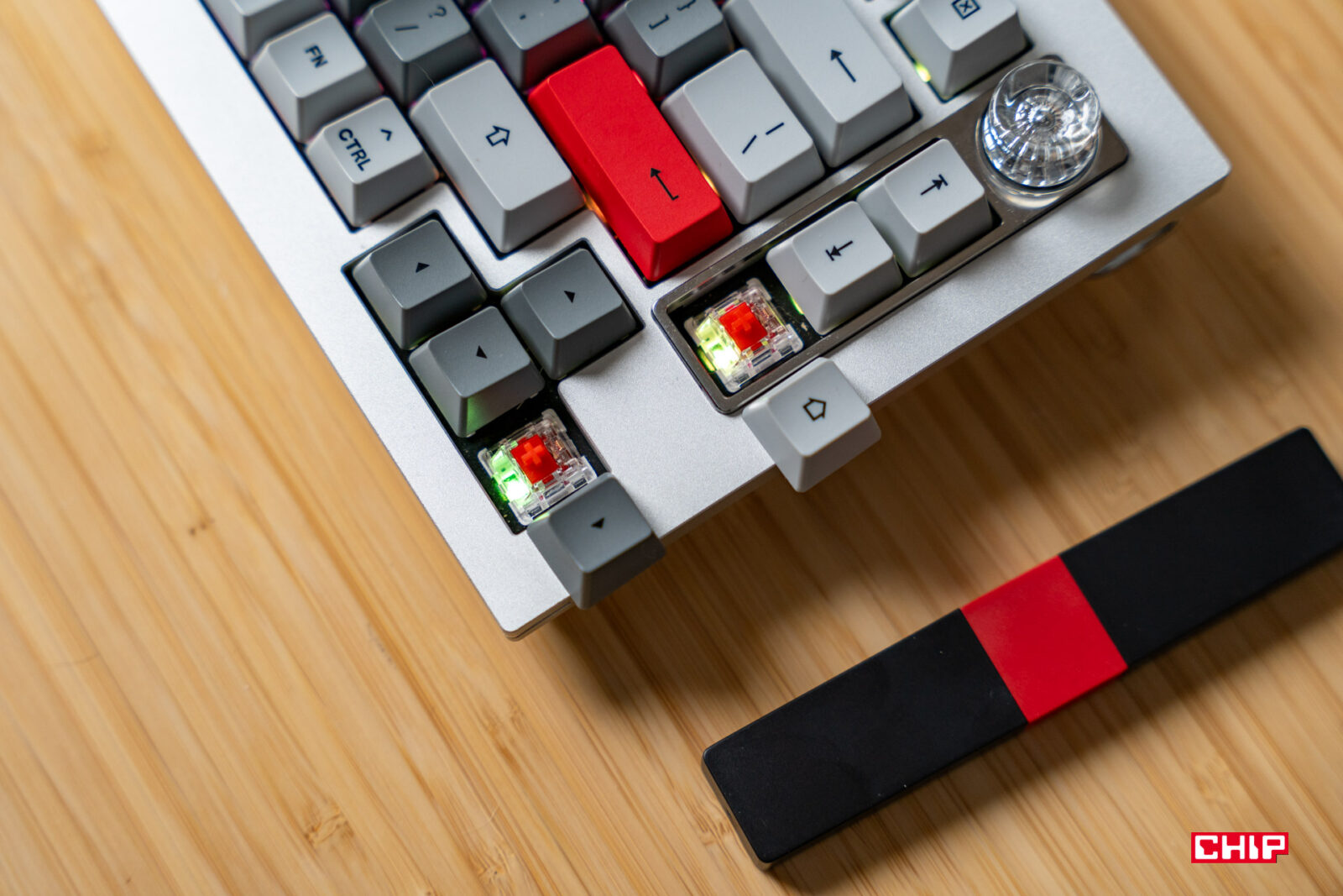 Do wyboru mamy dwa rodzaje przełączników, stworzonych we współpracy z firmą Keychron. W testowym wariancie dostępny były przełączniki Winter Bonfire i są to mechaniczne przełączniki liniowe. Przyciski duży skok, wyraźnie sprężynują, a wciśnięciu towarzyszy lekki, ale wyraźny opór. Dzięki temu przypadkowe wciśnięcia zdarzają się rzadko, choć punkt aktywacji jest stosunkowo niski. Dodatkowo opór w trakcie pisana to dobre ćwiczenie dla palców i nawet wielogodzinne korzystanie z klawiatury nie jest męczące.