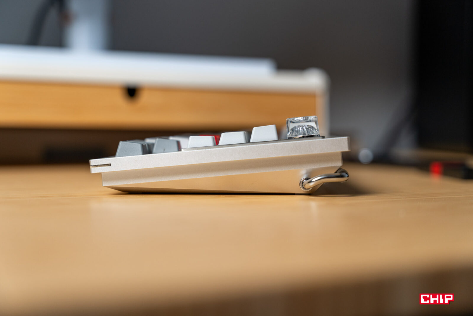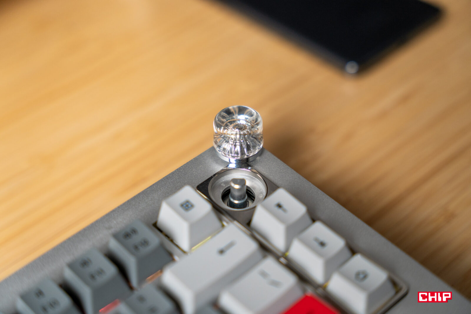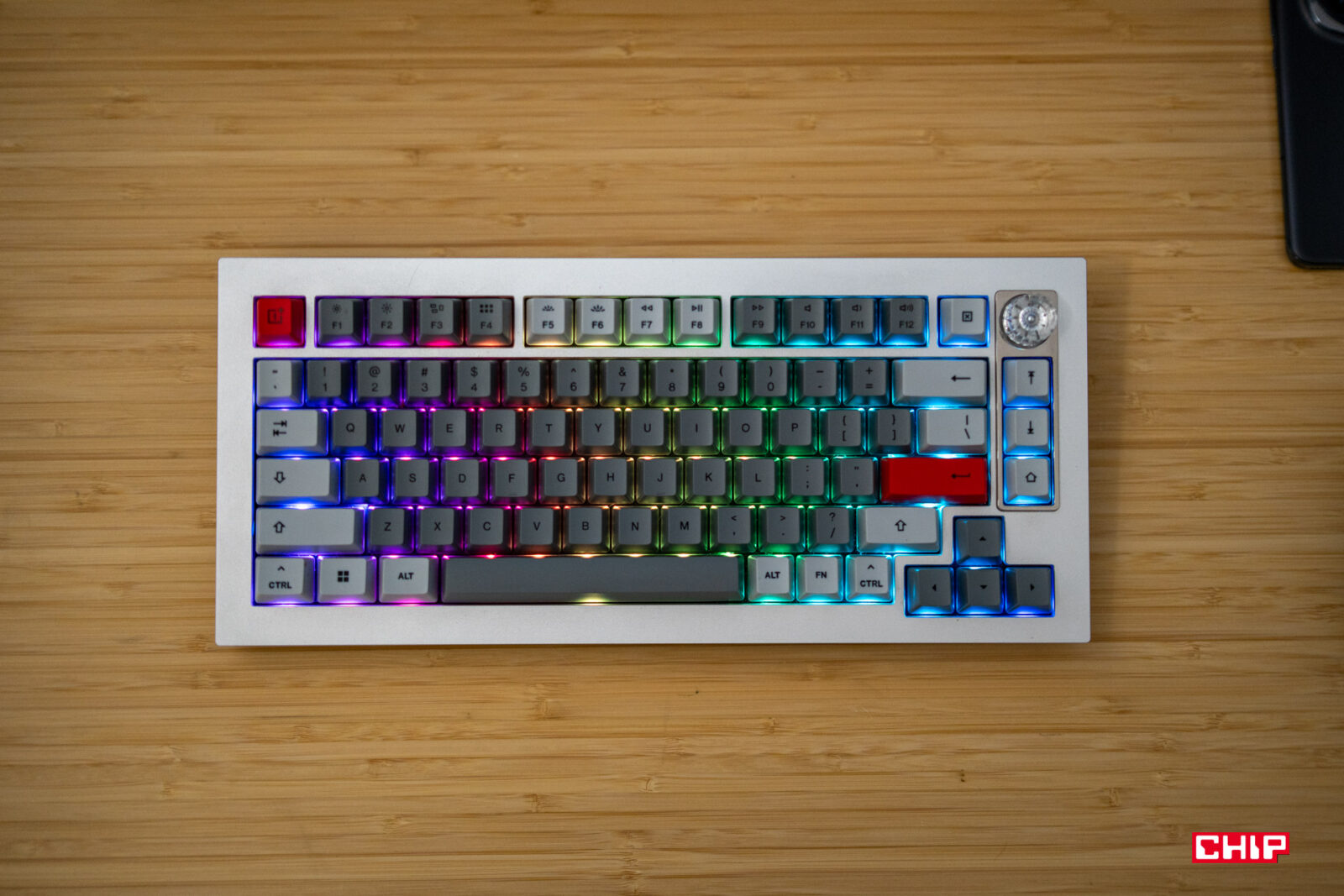 Wizualnie OnePlus Keyboard 81 Pro to prawdziwa perełka. Świetnie wyglądające przyciski w odcieniach szarości, czerwień charakterystyczna dla OnePlusa i przezroczyste pokrętło – to wszystko przyciąga wzrok jak szalone i nie spotkałem się z opinią, że coś tutaj wygląda źle.
