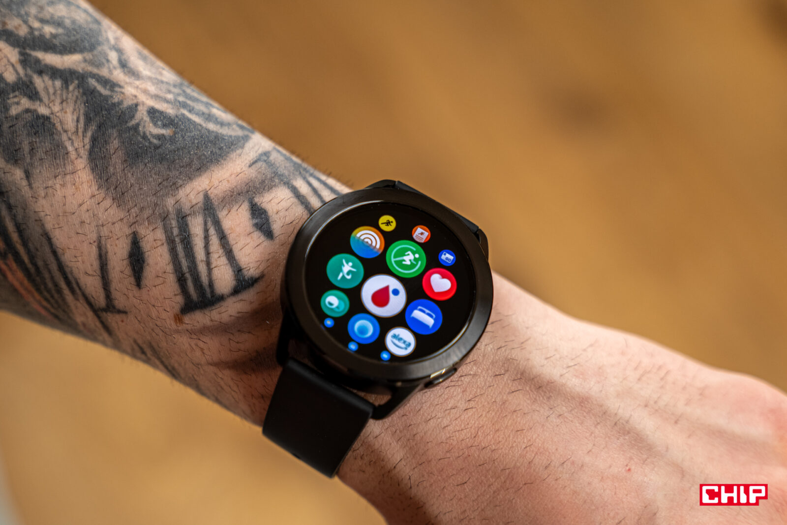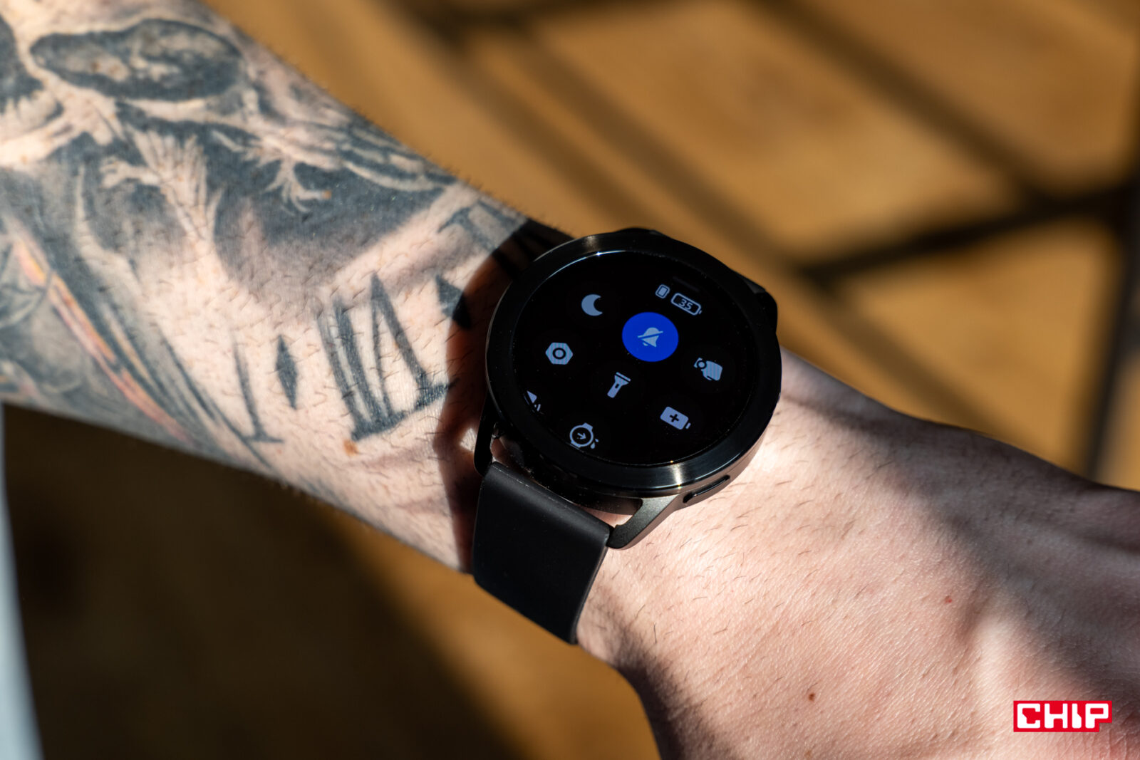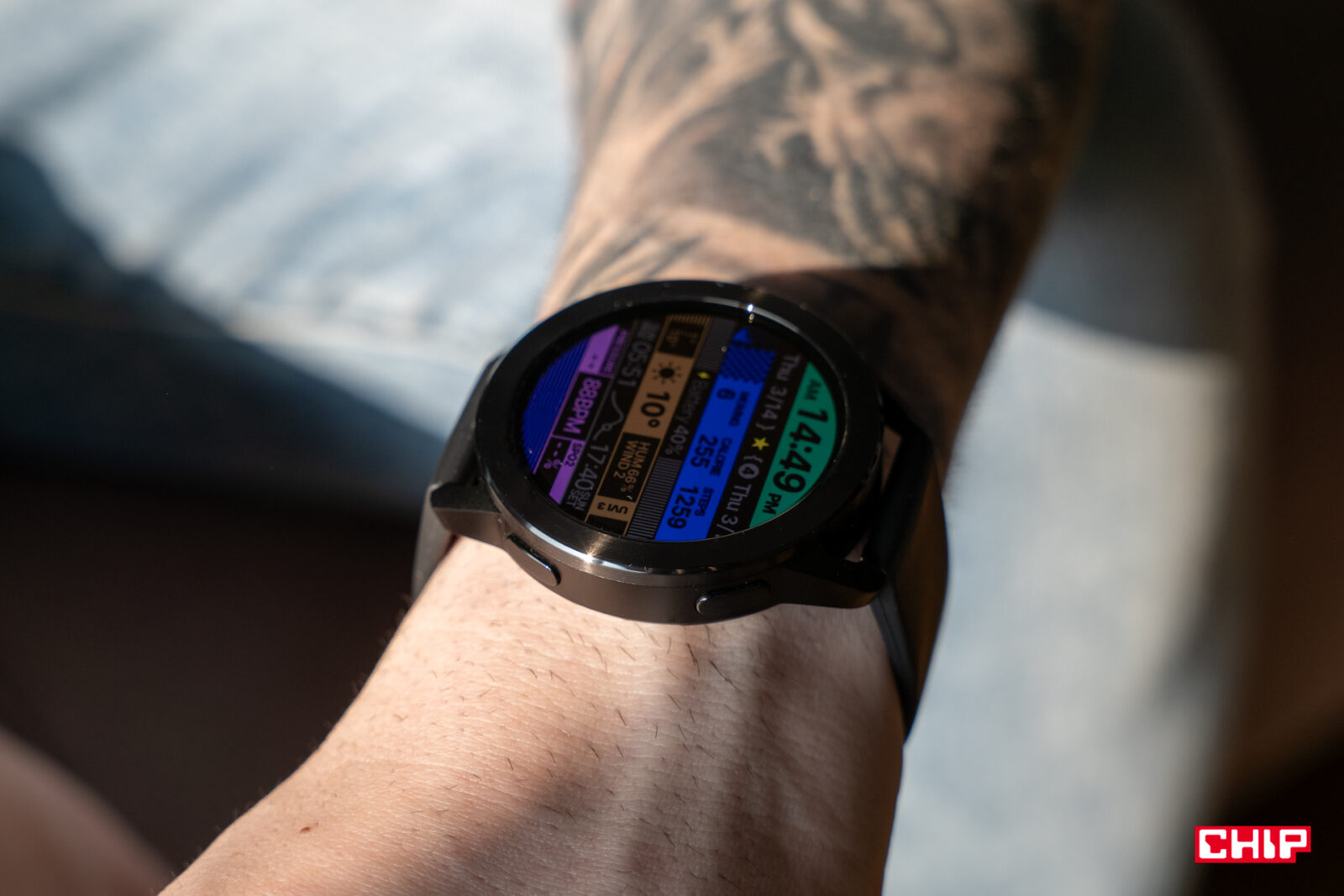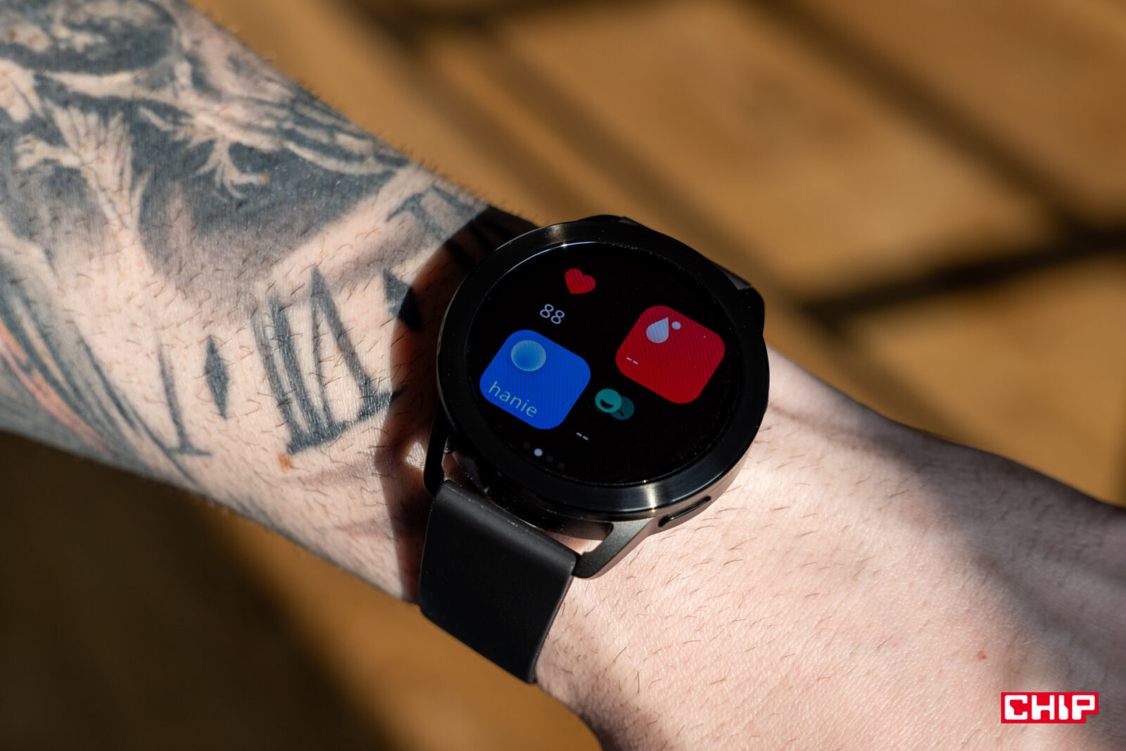 Nie zapomniano przy tym o sensownej rozdzielczości – ta wynosi 466×466 pikseli, co daje zagęszczenie 326 ppi. To bardzo dobry rezultat i daje przyjemny dla oka efekt. Miłe wrażenie potęguje naprawdę udany panel AMOLED. Jest pełen barw, wydaje się też w rzeczywisty sposób reprezentować kolorystykę, co widać zwłaszcza przy tworzeniu tarcz opartych o własne zdjęcia. Z pewnością kolorowy interfejs na czarnym tle pozwala uwypuklać zalety zastosowanego panelu, ale i tak trzeba oddać, że w skrajnych przypadkach dałoby się na nim obejrzeć film.