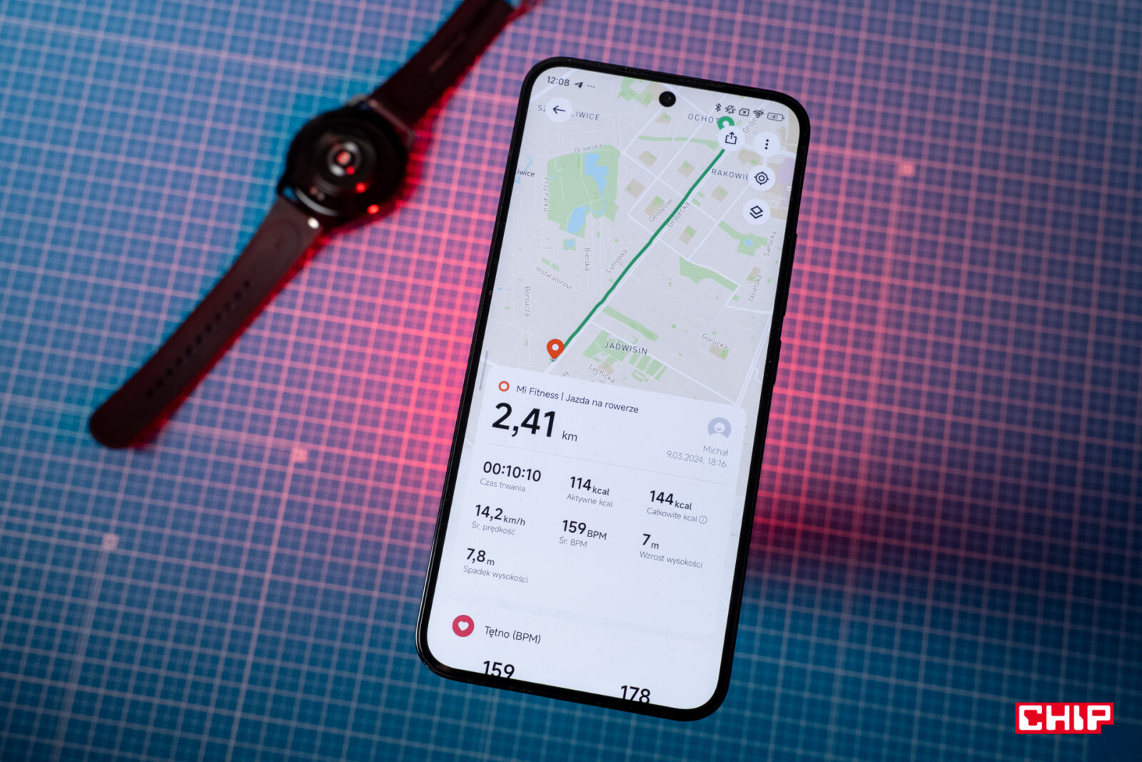 Nie będę udawał, że znam się na dyscyplinach sportowych i pomiarach aktywności. Przetestowałem Xiaomi Watch S3 podczas spacerów i przejażdżek na rowerze miejskim. Interfejs pokazuje ważne informacje, dzieli trening na kadencje na bazie analizy tętna i na kilku ekranach pozwala kontrolować chociażby muzykę czy odebrać powiadomienia. By wyłączyć trening lub zrobić w nim przerwę, musimy przytrzymać palec na odpowiednim przycisku na ekranie. Po zakończonym treninigu zobaczymy jego ścieżkę naniesioną na mapy w aplikacji Mi Fitness, więc możemy się podzieli rezultatem lub tylko zapisać go w formie obrazka.