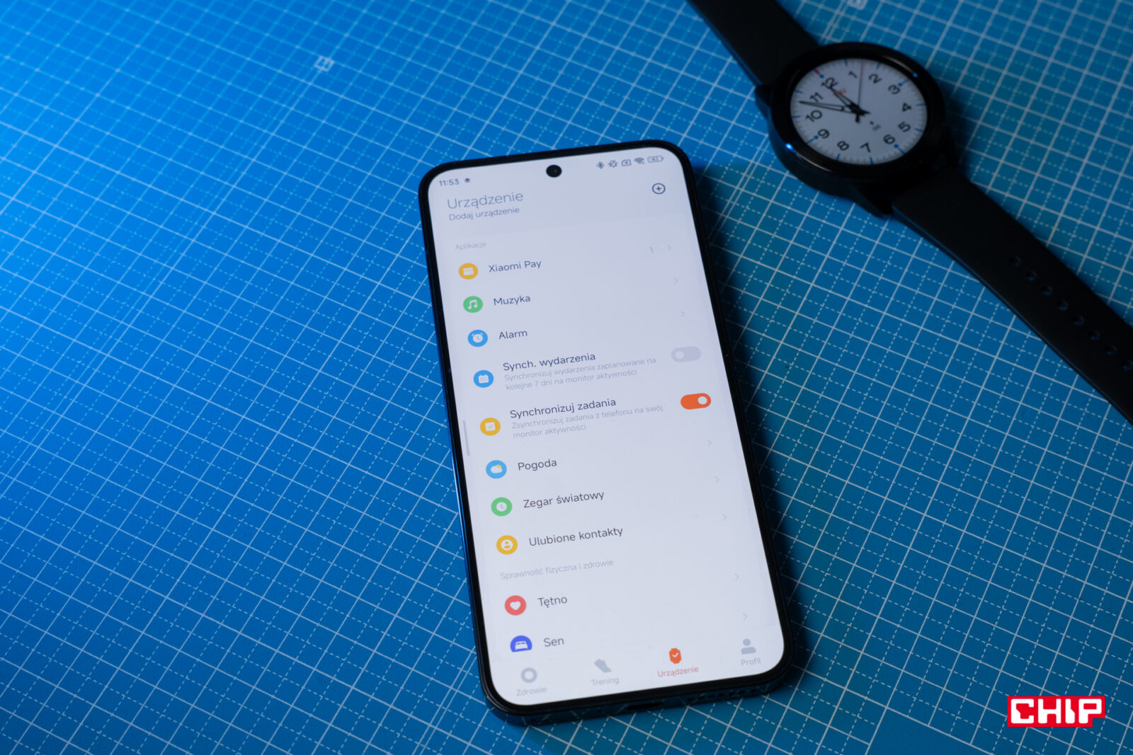 Najważniejsze z perspektywy działania zegarka są rozwiązania w sekcji “urządzenie”. To tu skonfigurujemy Xiaomi Pay i wiąże się to z nadaniem kodu PIN dla zegarka. To tu dodamy muzykę i posegregujemy ją w playlisty, ale też dodamy przypomnienia o zadaniach czy ulubione kontakty. Nie zabrakło funkcji typowych dla smartwatchy, jak znajdowanie urządzenia, ustawianie pogody czy dopasowanie konkretnych widżetów i aplikacji. Cieszy, że dla urządzenia ustawimy godziny snu oraz że sprzęt synchronizuje się z trybem “Nie przeszkadzać” na smartfonie.