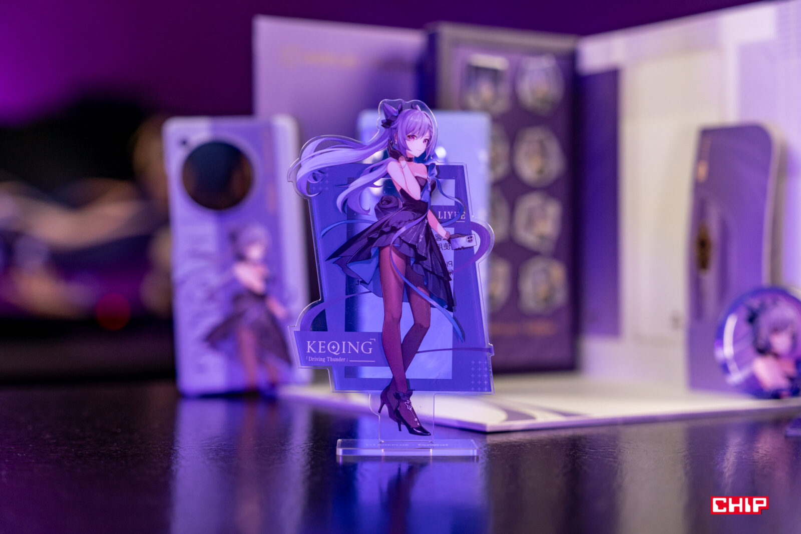 Idąc głębiej trafiamy na plastikowe konstrukcje. Po ich złożeniu okazuje się, że jedna to figurka Kequing, a druga jest stojakiem na smartfon. Plastik jest gruby, oklejony folią ochronną, spasowanie elementów jest bardzo dobre, a całość solidnie się trzyma.