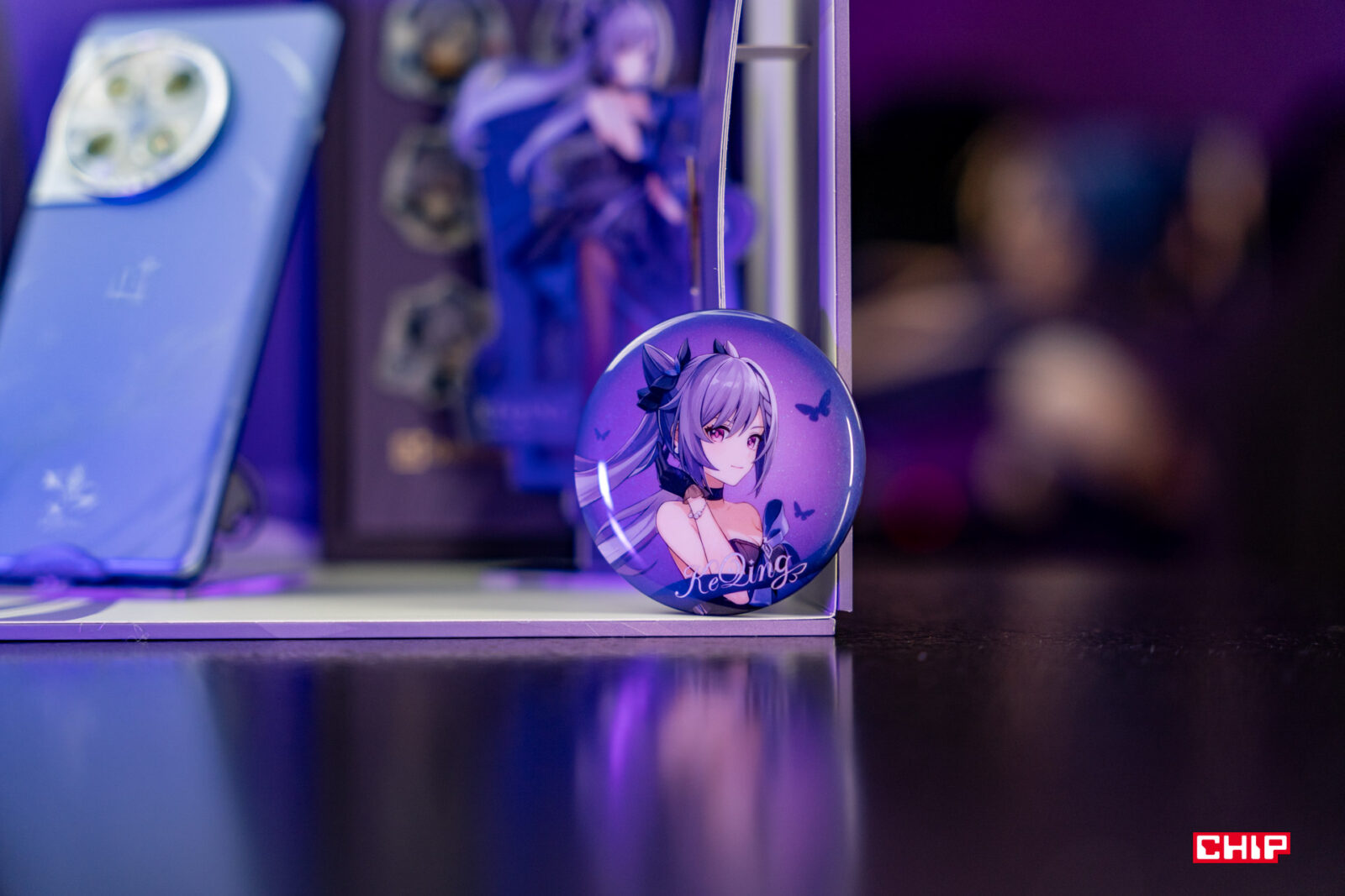 Kolejna warstwa to smartfon, który na razie odłóżmy na bok i spora, metalowa przypinka. Z klasyczną agrafką z drugiej strony. Dobrej jakości nadruk, solidna blacha i mocowanie zaczepów. Pierwszy element na duży plus.