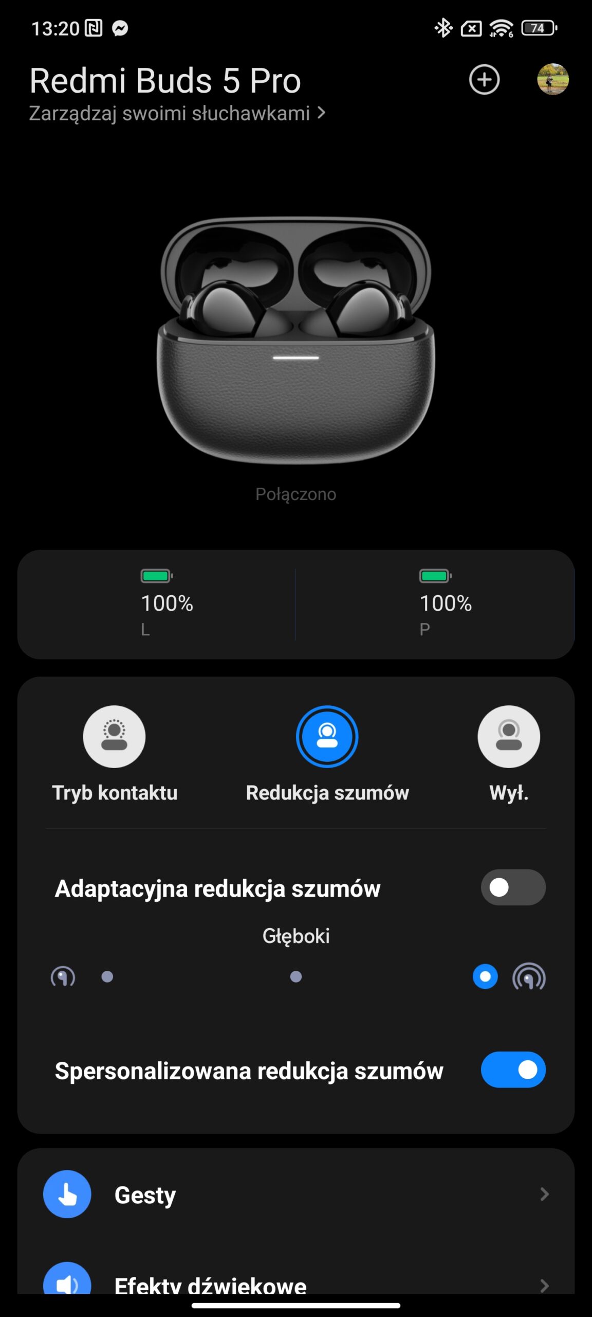 A co z jakością rozmów? Jest całkiem dobrze: zarówno głos nasz, jak i rozmówcy brzmią wyraźnie i naturalnie, o ile wokół jest w miarę cicho. Im większy hałas, tym większe zniekształcenia dźwięku – w tym wypadku jednak priorytetem jest zrozumiałość dla rozmówcy, a nie wierność, a tu Redmi Buds 5 Pro sprawdzają się całkiem dobrze.