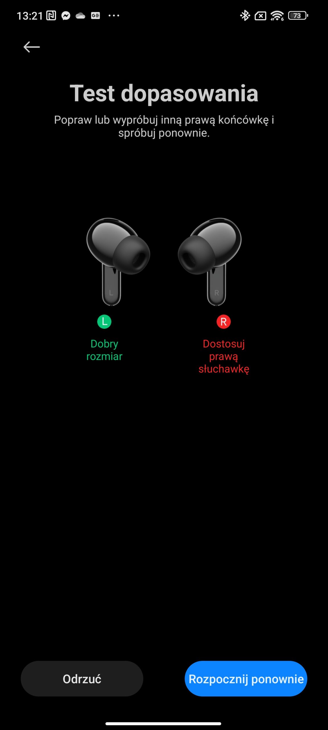 Muszę jednak przyznać, że po pierwsze, mimo wszystko były to jedne z lepiej współpracujących ze mną słuchawek tego typu, a po drugie, gdy już udawało mi się je poprawnie założyć, to mogłem słuchać muzyki bez wielkiego zmęczenia przez dłuższy czas. Moja żona z kolei nie miała najmniejszych problemów z dopasowaniem i zakładaniem, pozostaje mi zatem jeszcze raz podkreślić, że dużą rolę tu odgrywają cechy indywidualne. A przy okazji – w oprogramowaniu Xiaomi można sprawdzić poprawność dopasowania oraz założenia słuchawek i warto z tego korzystać.