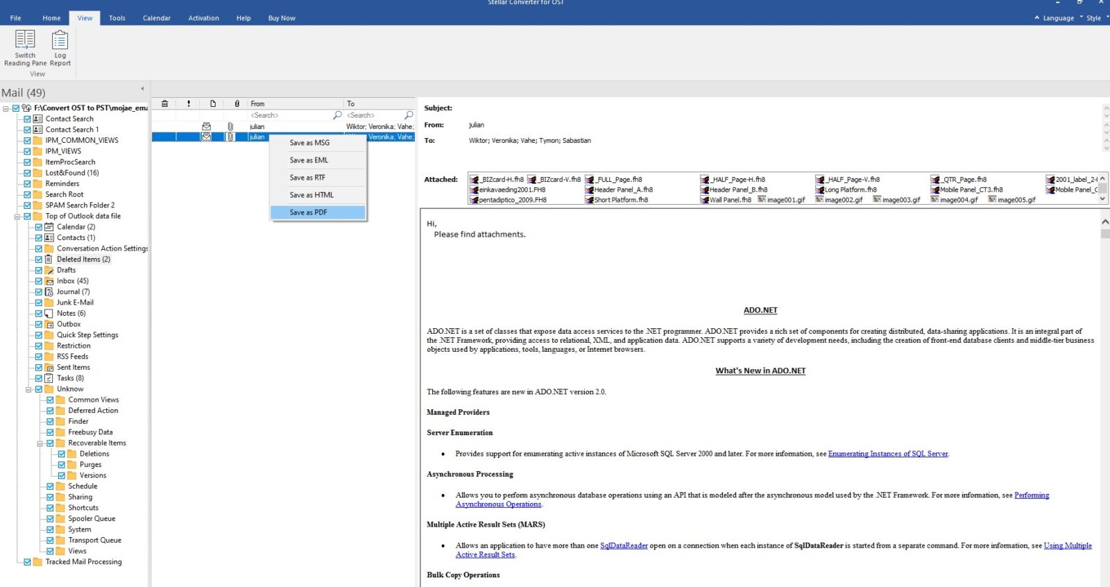 - eksport plików OST do formatu PST – co może być pomocne, jeśli skasujesz maile z Exchange bez uprzedniego stworzenia ich kopii zapasowych. Nie są one jednak utracone na zawsze, a zapisane w pliku OST. Dzięki aplikacji Stellar Converter for OST możesz uzyskać dostęp do nich, przekonwertować je na pliki PST, a następnie zaimportować do serwera Exchange;