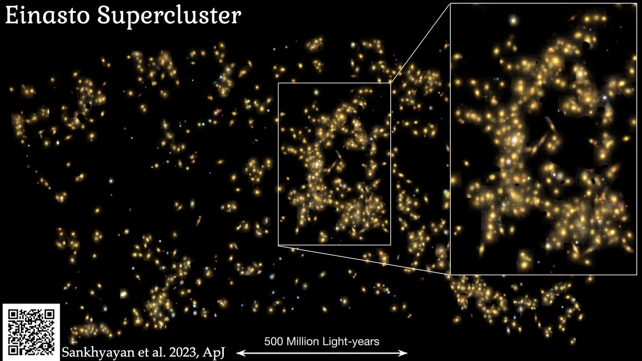 Supergromada Einasto ma około 360 milionów lat świetlnych średnicy. Dotychczasowa rekordzistka miała “tylko” 250 milionów lat świetlnych