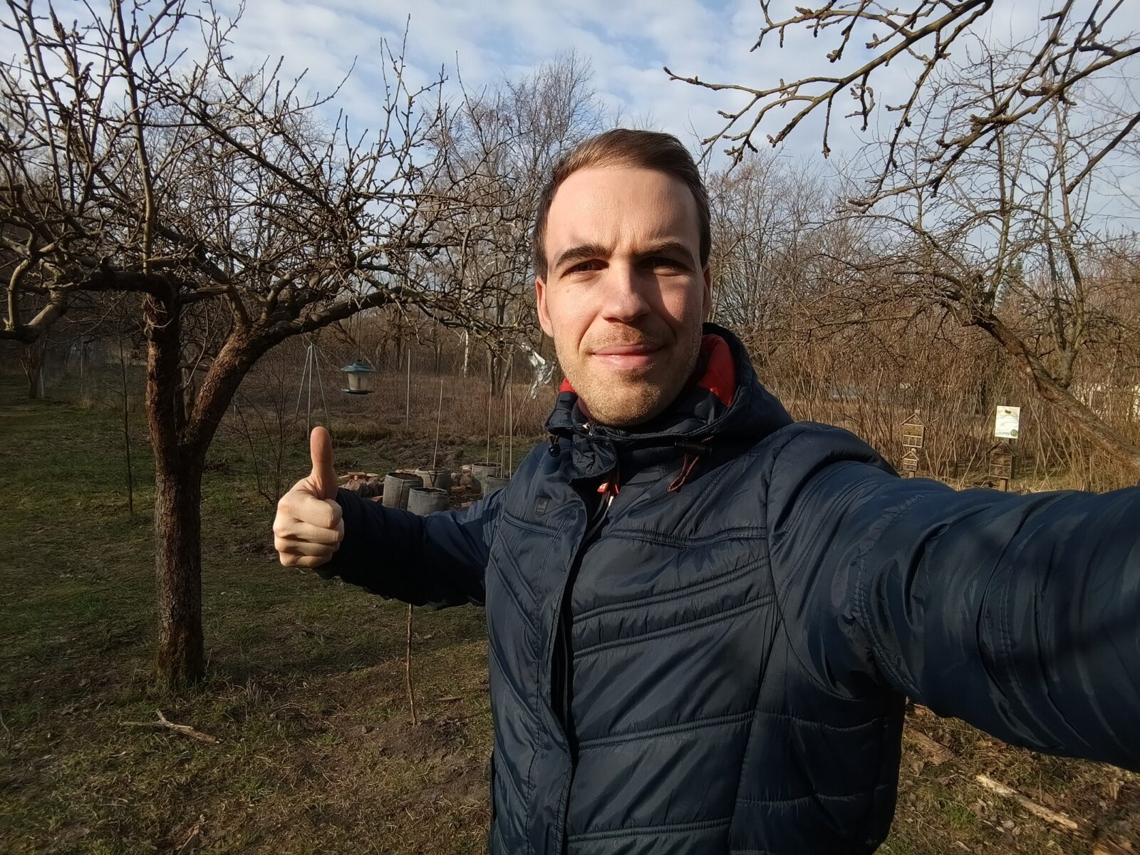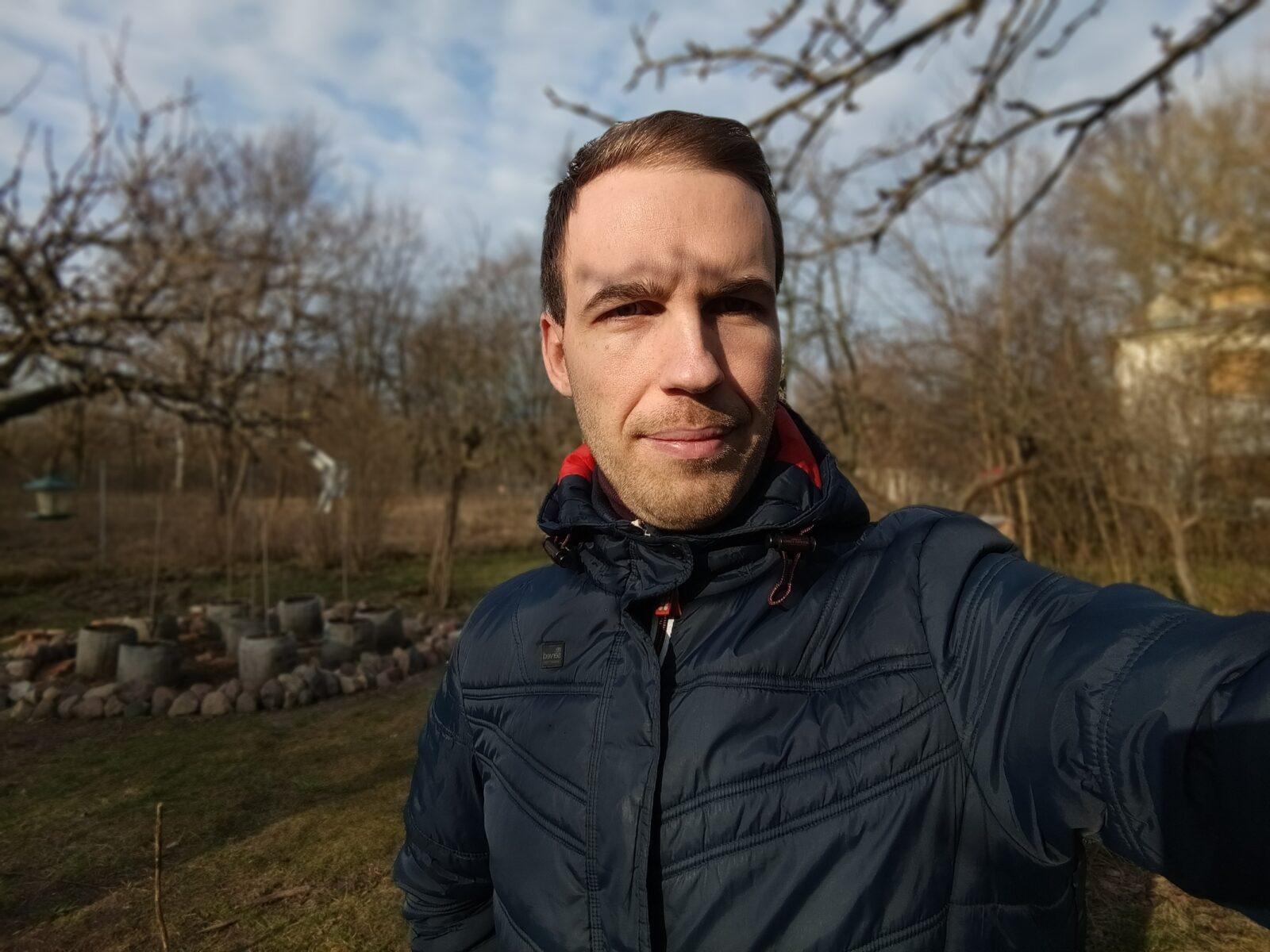 Przedni aparat do selfie to 32 Mpix matryca z optyką o jasności f/2.2 i podwójną podwójna diodą doświetlająca. Tego typu dioda nie zdarza się zbyt często w smartfonach, także brawa dla producenta. Jakość „selfiaków” jest naprawdę dobra. Szczegółów jest naprawdę dużo, a tło odpowiednio rozmyte w trybie portretowym, także zdjęcia na portale społecznościowe nadadzą się spokojnie.