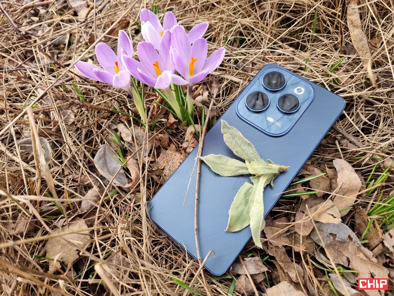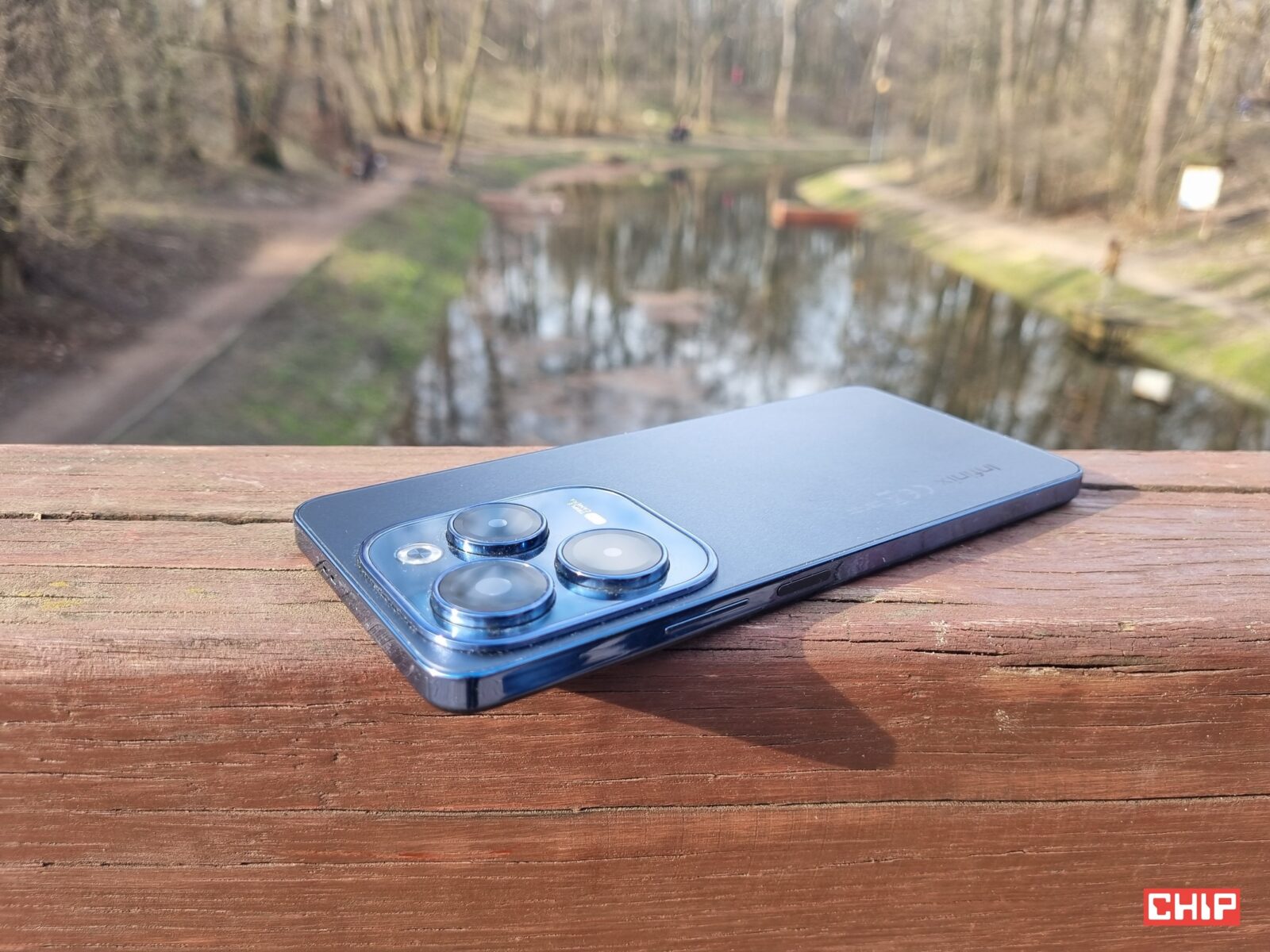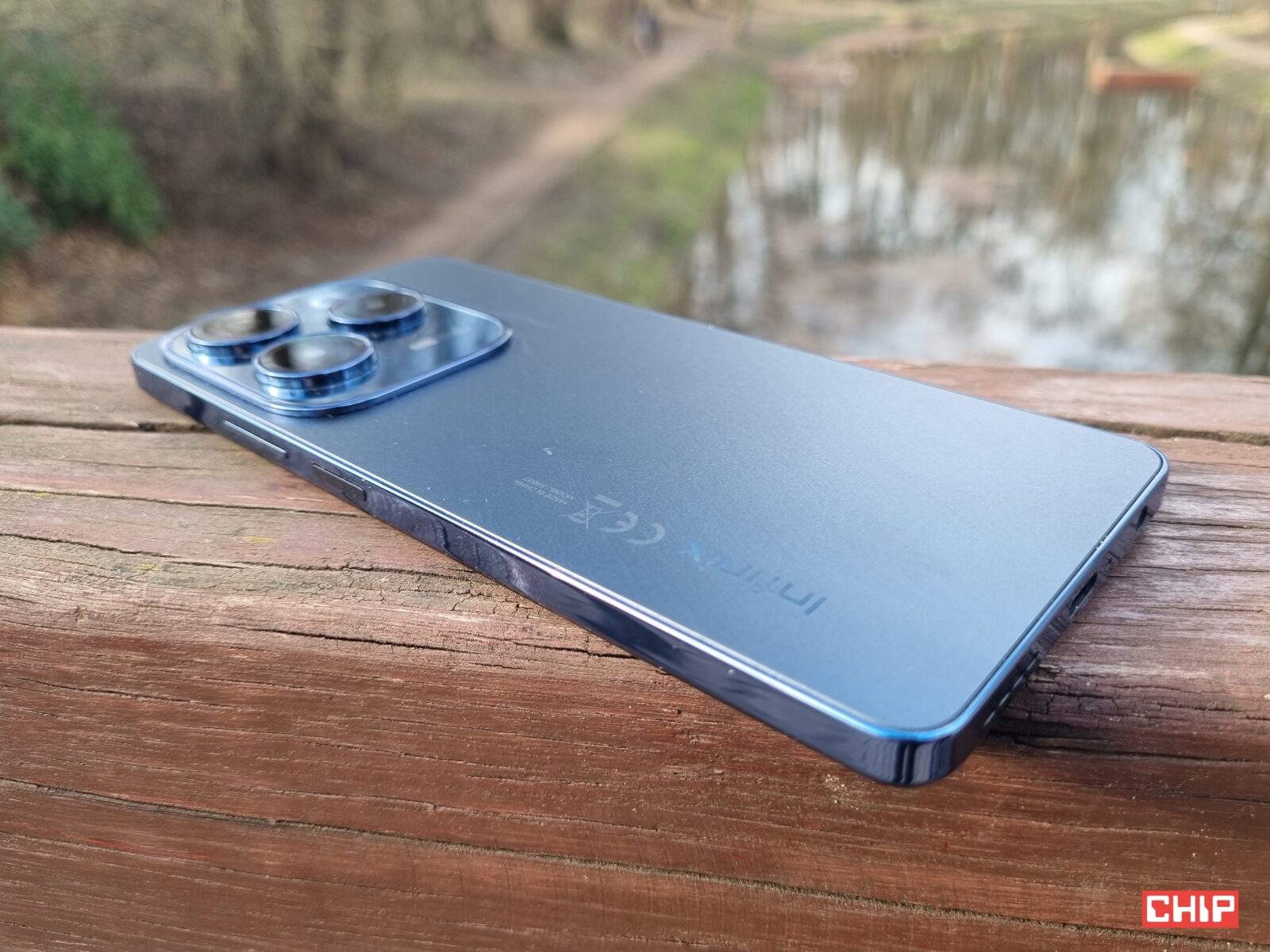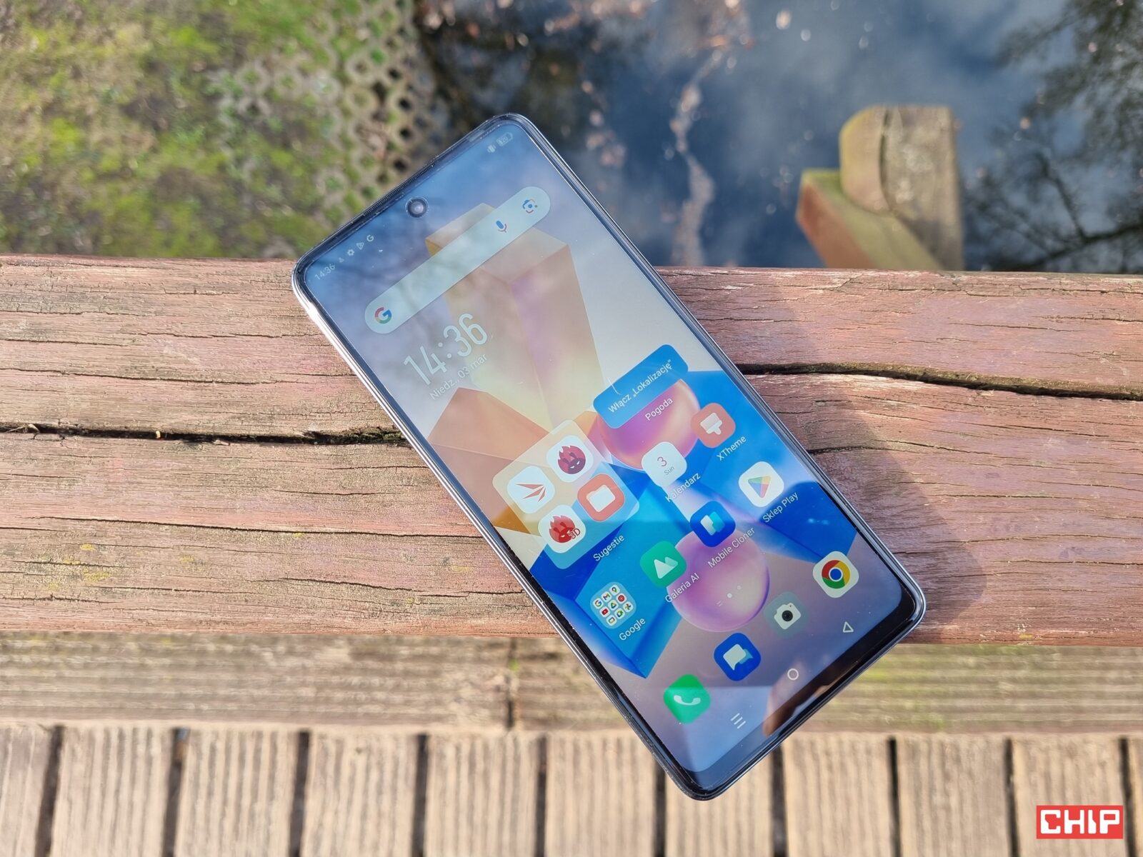 Infinix Hot 40 Pro został wyposażony w 6,7 calowy ekran IPS o rozdzielczości 2460 x 1080, proporcjach 20,5:9 i częstotliwości odświeżania 120 Hz. Pośrodku górnej krawędzi jest oczywiście otwór na obiektyw przedniego aparatu. O ile sama jakość obrazu jest bardzo dobra jak na panel IPS (niezłe kąty widzenia, nasycone barwy itd.), to niestety maksymalna jasność pozostawia trochę do życzenia. Wg danych producenta jest to 500 nitów, co niestety nie zapewnia komfortowej pary w pełnym, prawie wiosennym słońcu, a w lato będzie przecież jeszcze gorzej.