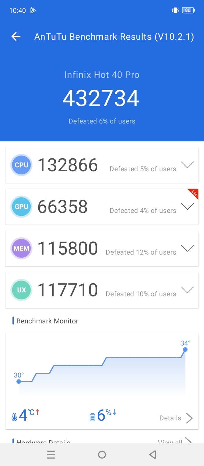 - Antutu Benchmark 10.2.1 – 432 734 pkt