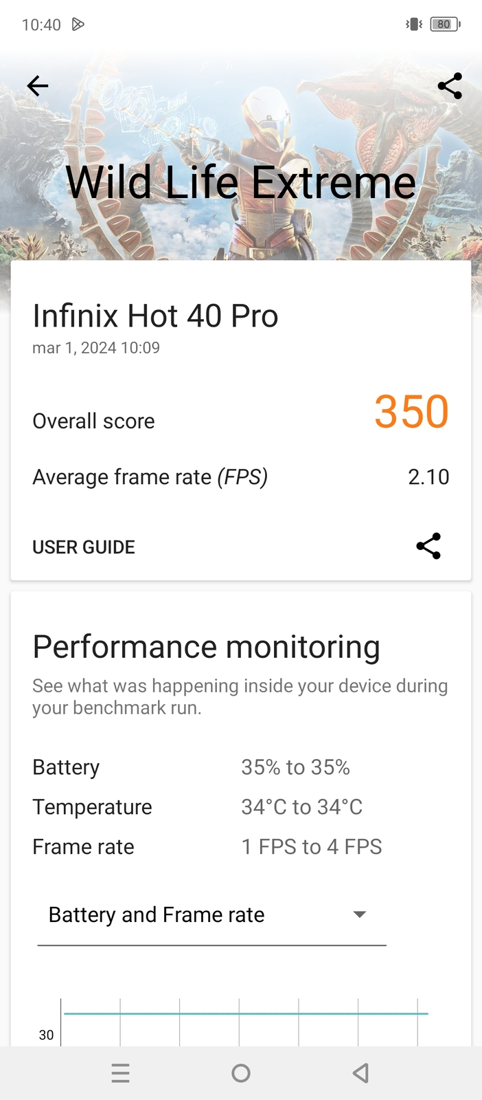 - 3D Mark (test Wild Life Extreme) – 350 pkt