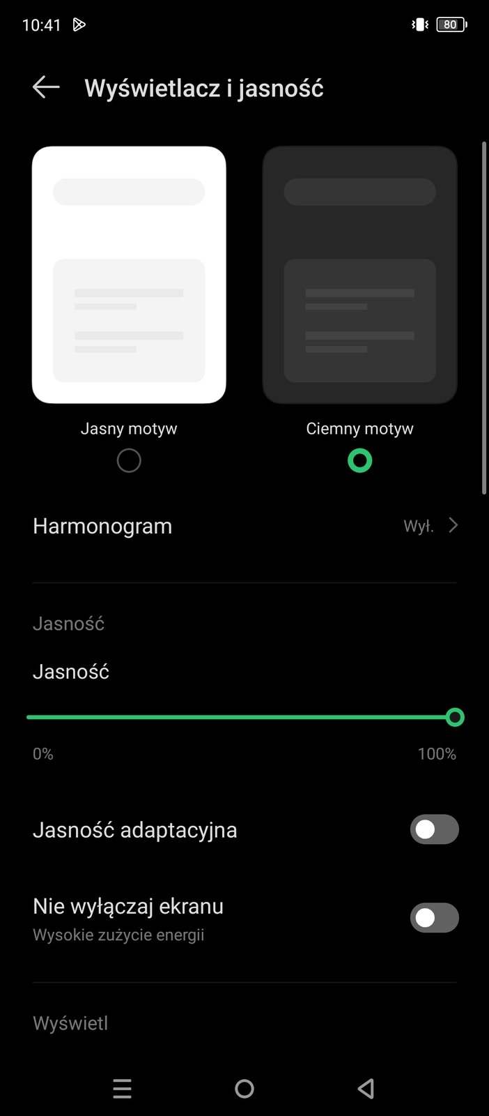 Na pociechę pozostaje nam 120 Hz odświeżanie, które cały czas nie jest standardem w tej klasie cenowej. W ustawieniach możemy je zresztą regulować – dostępne są następujące opcje: 60 Hz, 90 Hz, 120 Hz i ustawienie automatyczne. Poza tym w ustawieniach możemy ustawić oczywiście tryb ciemny dla menu, włączyć filtr światła niebieskiego i wyregulować temperaturę barwową.
