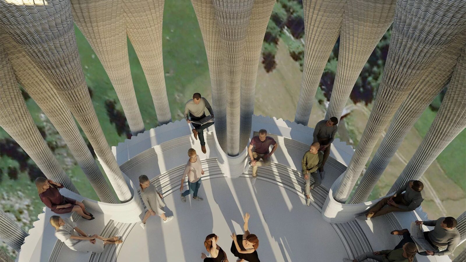Wieża została zaprojektowana jako wielofunkcyjna przestrzeń dla instalacji artystycznych, muzycznych i teatralnych. Ma pięć pięter, a spiralna, długa sekwencja kolumn prowadzi gości do kameralnej sceny na najwyższym poziomie, gdzie mogą odbywać się koncerty, maksymalnie z udziałem 45 osób.