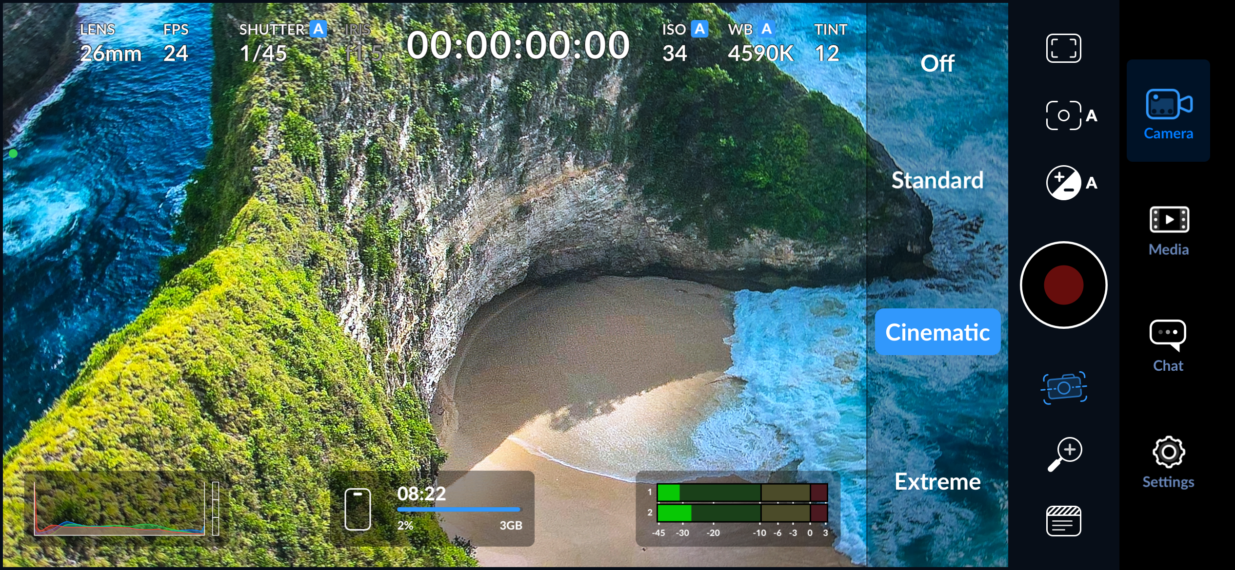 Blackmagic Camera na iOS pojawił się w momencie, gdy jego największy i najmocniejszy konkurent zaczął uważać, że może pozwolić sobie na dodatkowe dojenie klientów. Mowa o Filmic Pro, programie, który miał olbrzymie możliwości i był swego rodzaju standardem, do którego wszyscy próbowali równać, ale standardem drogim – szczerze mówiąc, nie pamiętam, ile za program zapłaciłem, ale nie było to mało, a do tego dodatkowe moduły też były płatne.