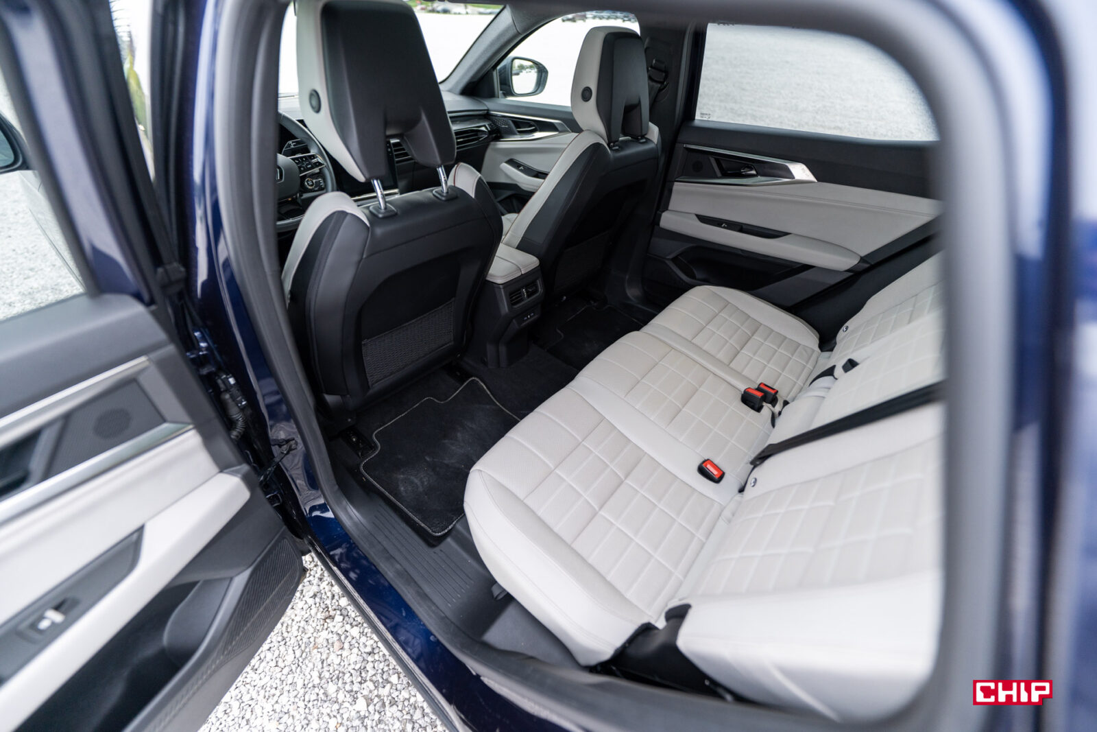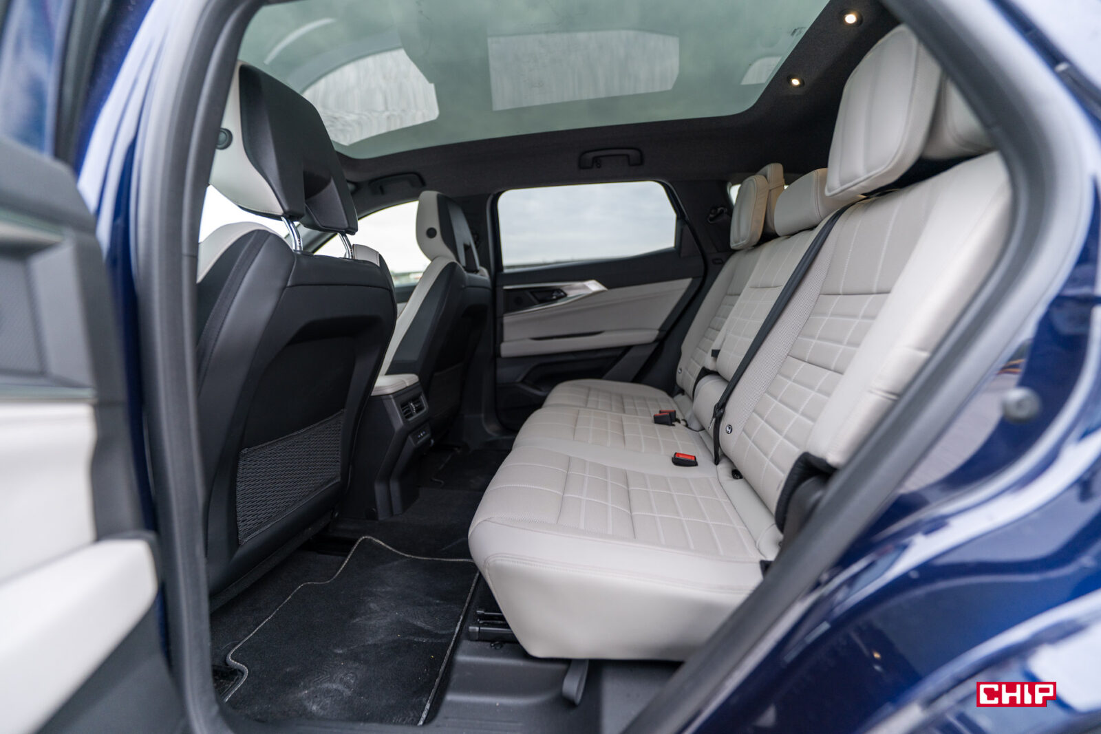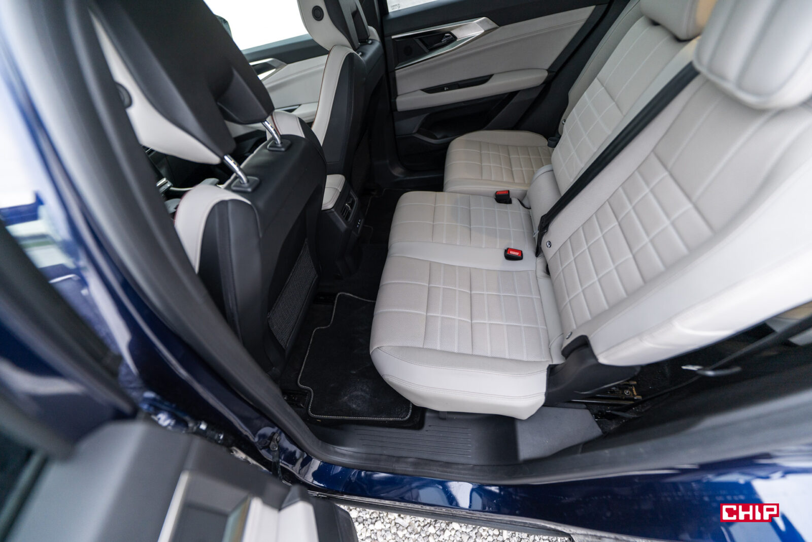 Rzućmy okiem na tylną kanapkę. Jest tu bardzo dużo miejsca, mamy szeroko otwierane drzwi i porty USB-C w konsoli środkowej. Można tu bardzo wygodnie podróżować nawet w trzy osoby.