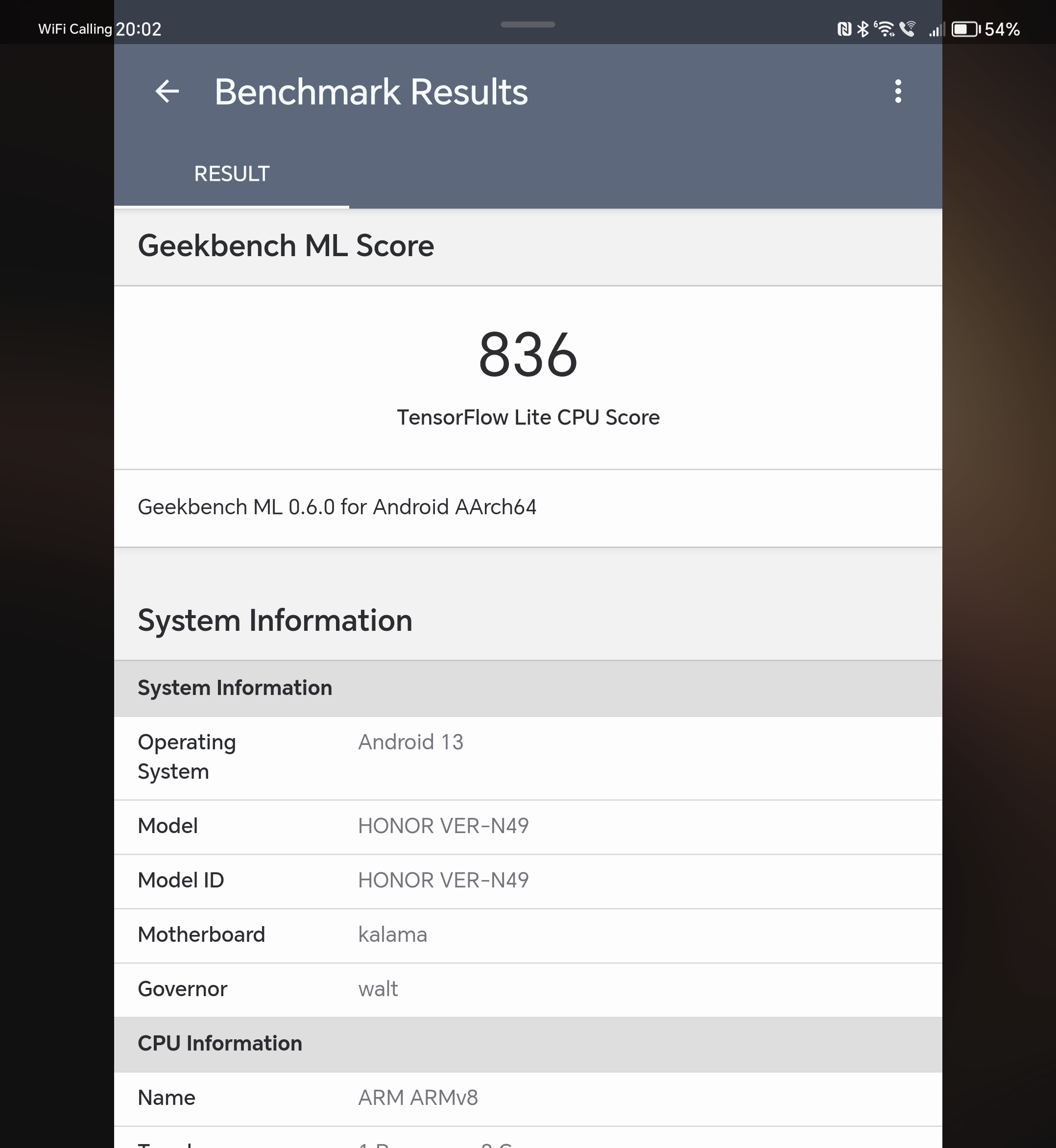 - Geekbench ML CPU: 836 pkt