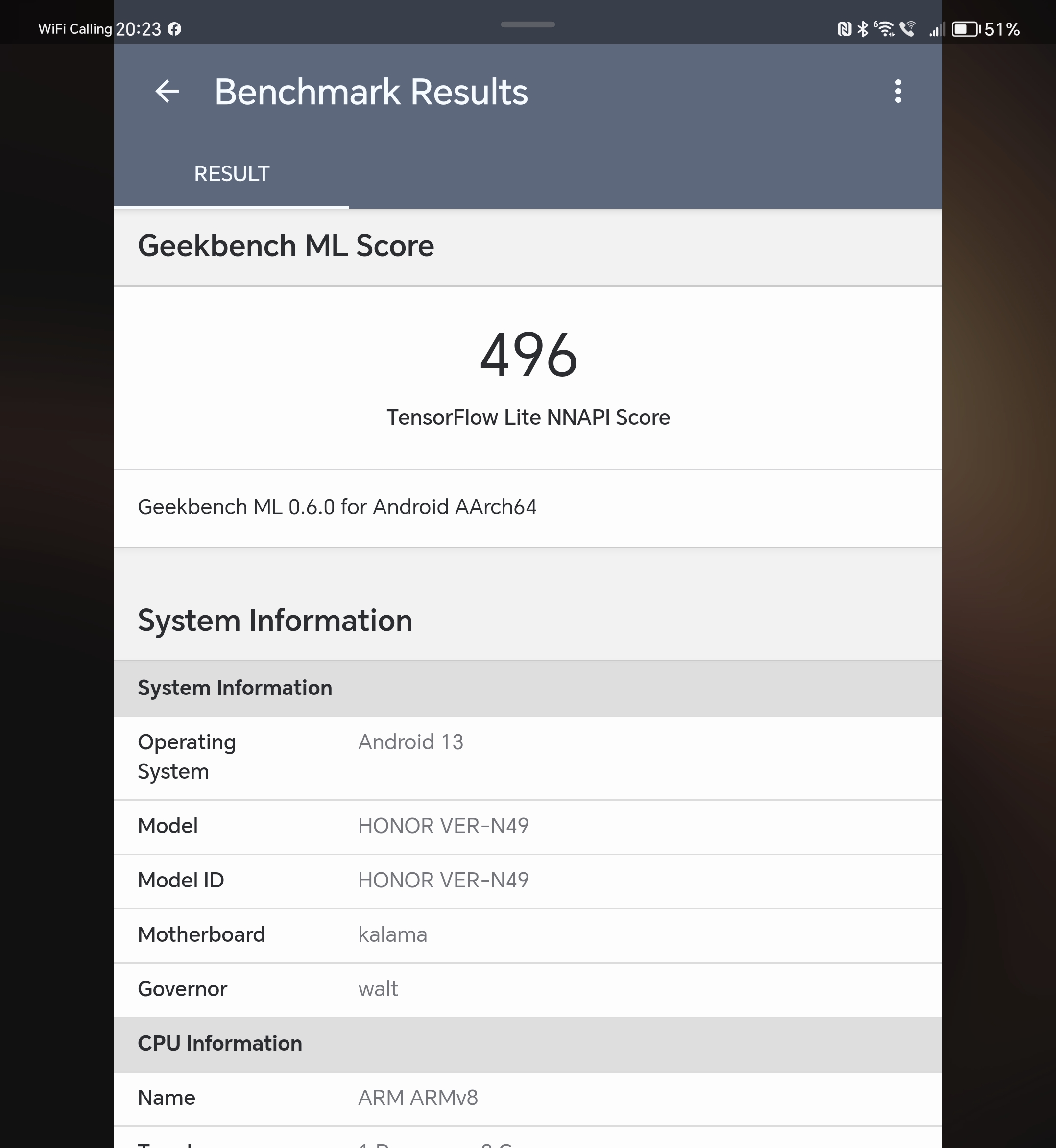 - Geekbench ML NNAPI: 496 pkt