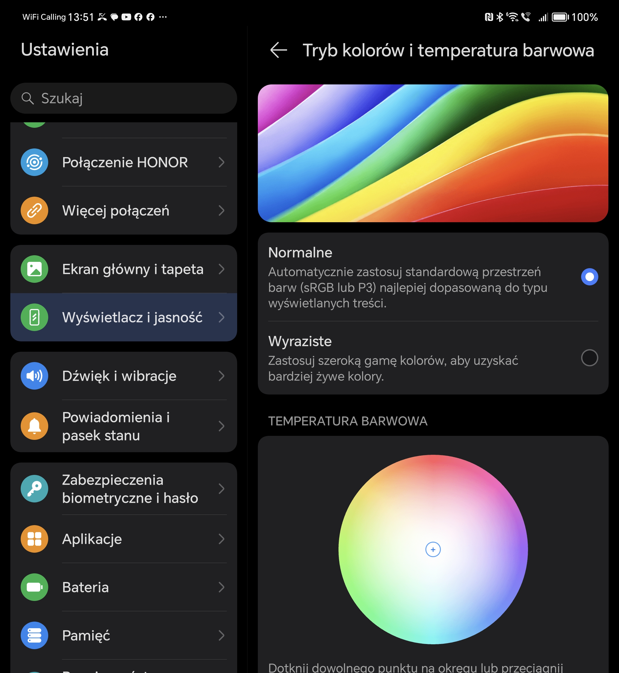 Oba wyświetlacze są zgodne z HDR, a Netflix melduje zgodność nie tylko z HDR10+ ale także Dolby Vision. Zachowana jest zgodność reprodukcji barw między ekranami, dostępne są dwa profile barwne – Normalny, w którym oprogramowanie przełącza w zależności od potrzeb między sRGB a P3, oraz Wyrazisty, w którym wykorzystywana jest pełna gama kolorów, jednak osiągany efekt jest dość odległy od naturalnego.