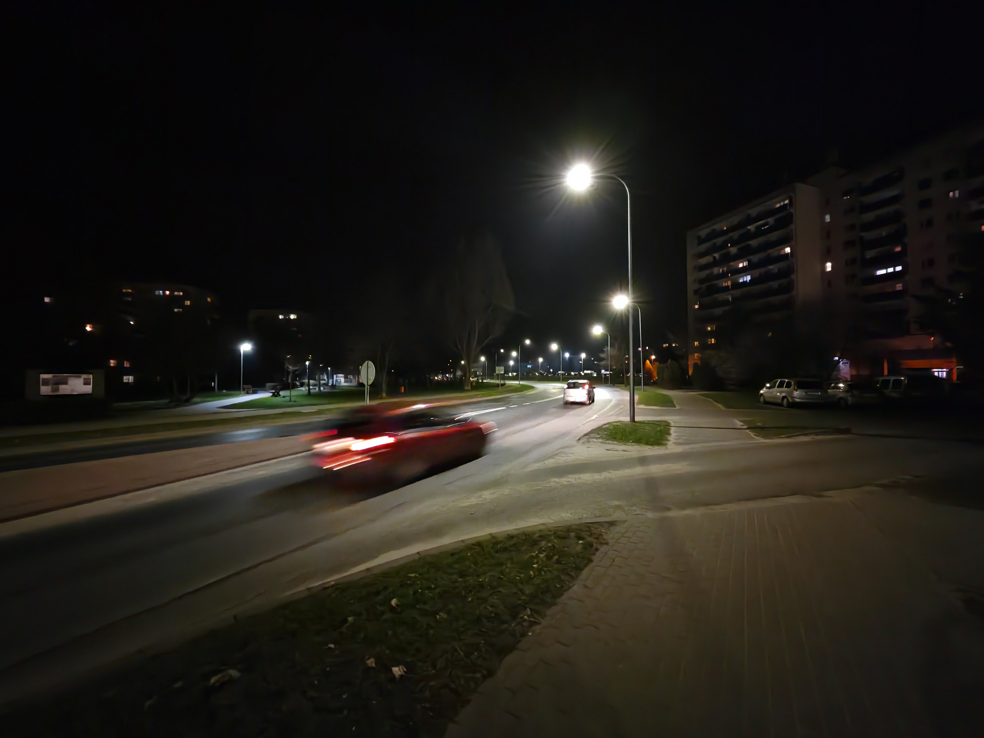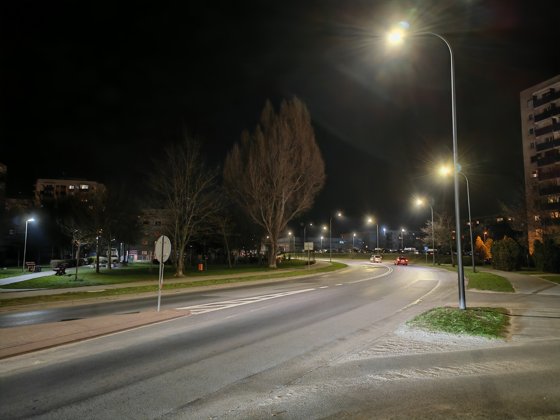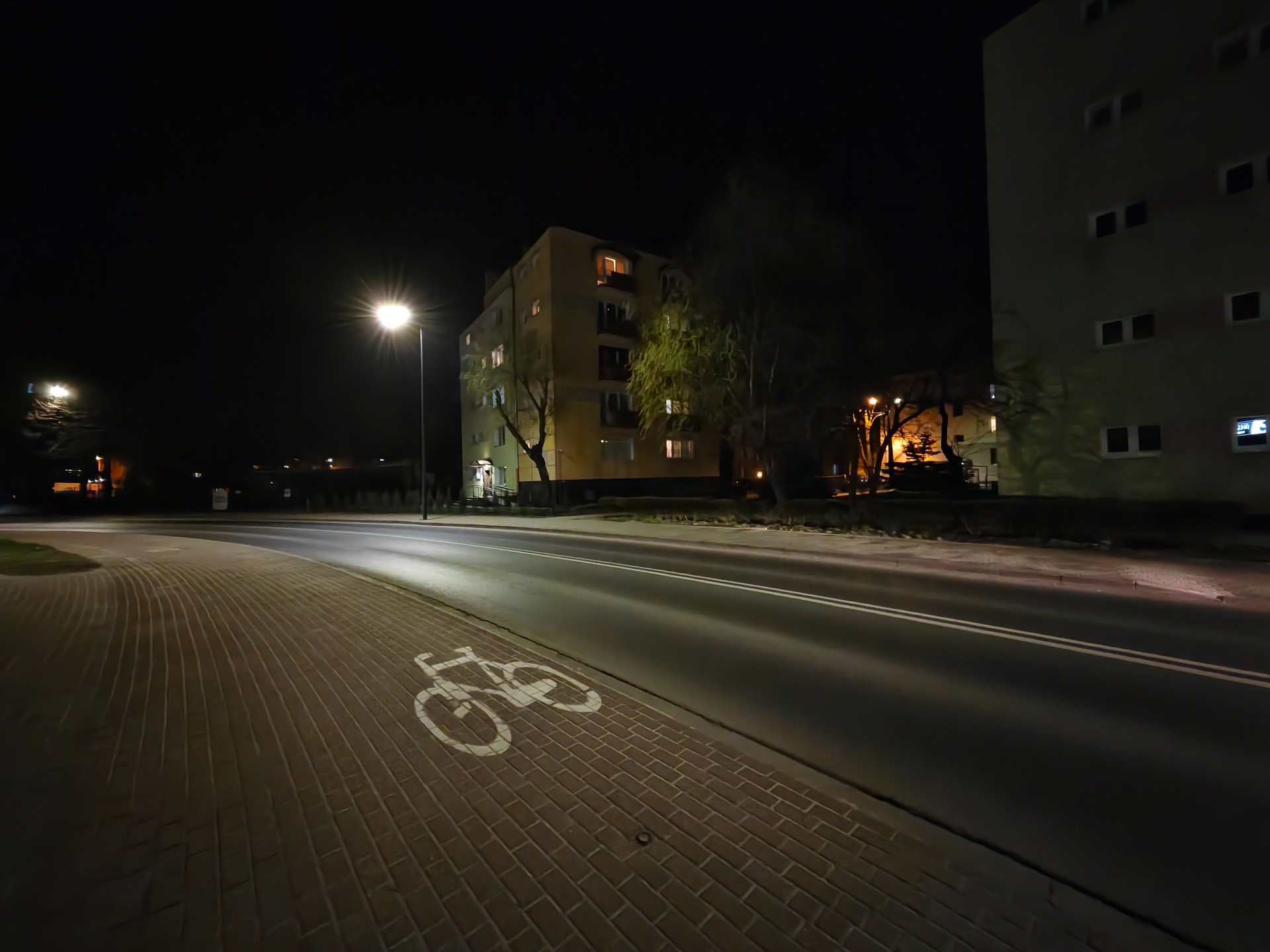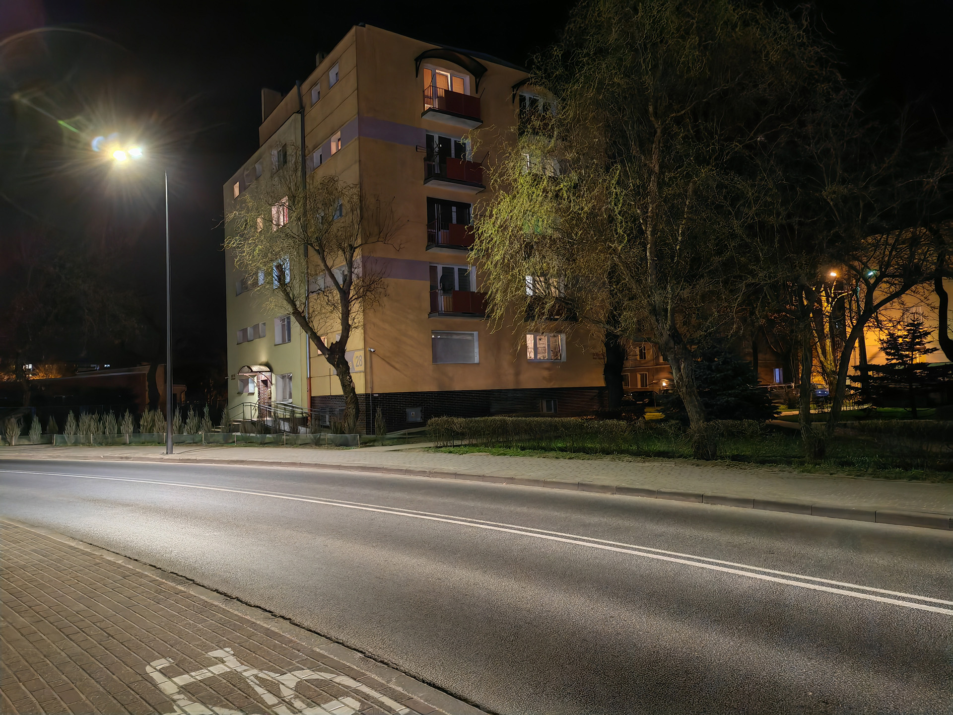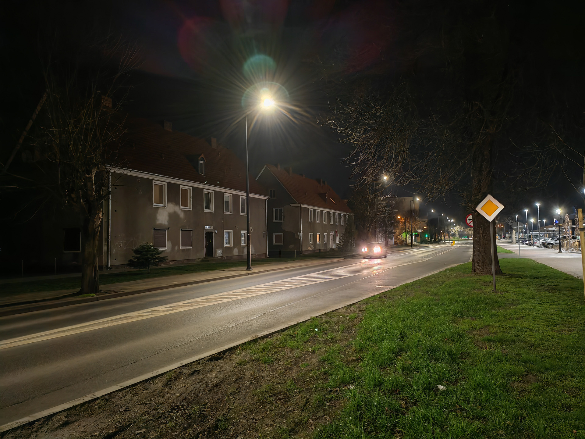 Honor Magic V2 radzi sobie nieźle także w nocy, ale tu różnice między aparatami są już znacznie większe. Najlepiej wypada oczywiście aparat główny, który wykonuje zdjęcia z niewielkimi flarami, pozbawione większych artefaktów i szczegółowe. Pozbawiony stabilizacji aparat ultraszerokokątny wypada słabiej, artefaktów i szumu jest więcej, a szczegółowość spada tym bardziej, im mniej jest światła. Aparat tele przy odpowiedniej ilości światła radzi sobie znośnie, lecz ciemniejsze kadry są złej jakości. Zbliżenia ×10 są na ogół bezużyteczne.